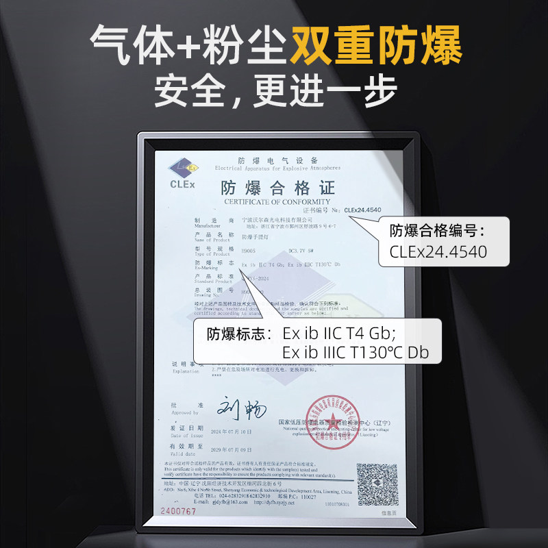 沃尔森H9005防爆证书手电筒带强光超亮led手提探照灯充电超长续航