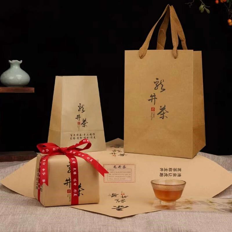 明龙井茶峰方前绿茶纸纸袋龙井狮牛皮纸西湖梅家V坞茶叶包装袋包