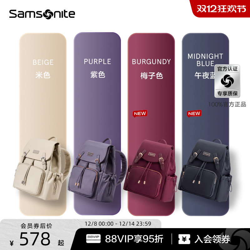 Samsonite新秀丽双肩包女士新款时尚短途旅行书包通勤轻便背包NW7
