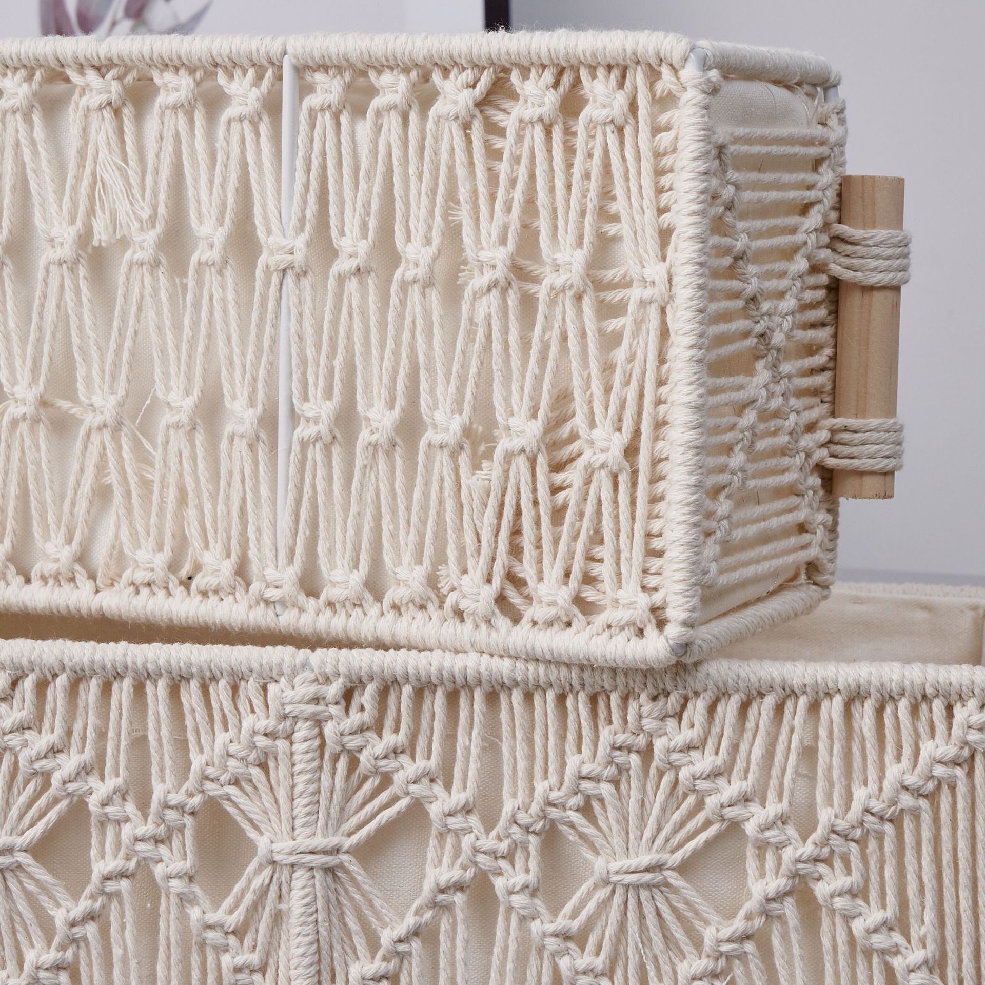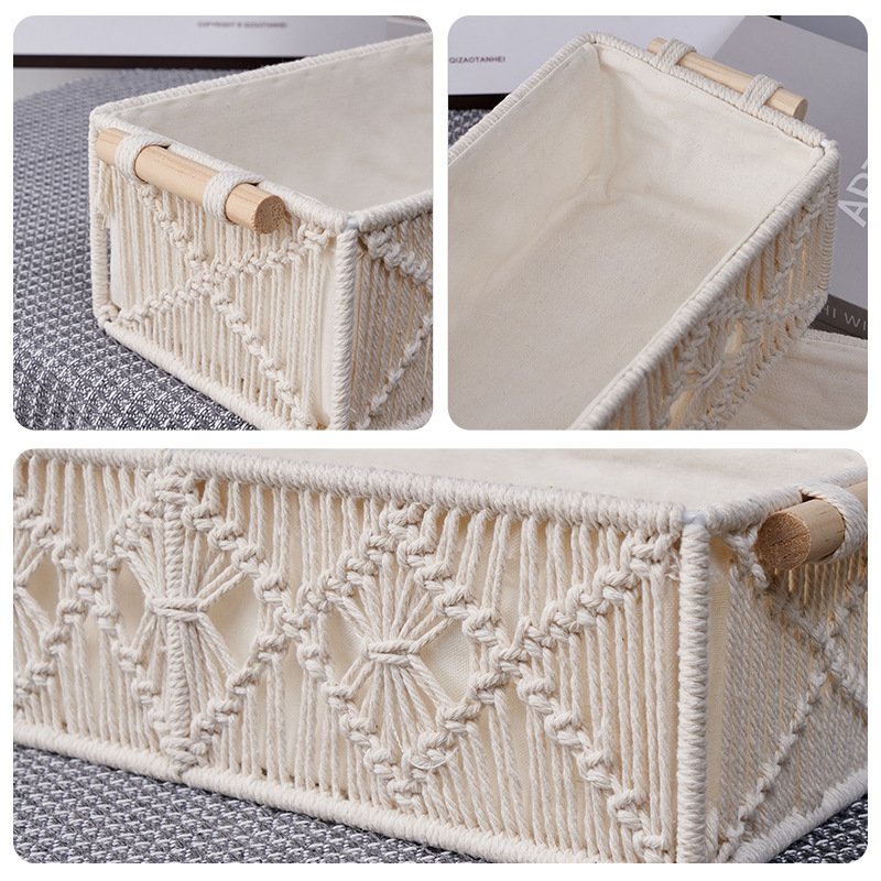 手工编织收纳筐 棉绳收纳盒桌面收纳文艺复古手工编织置物筐厂家