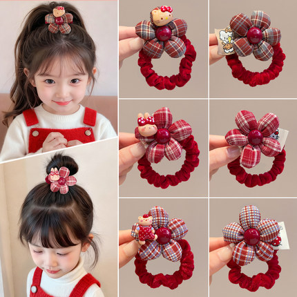 儿童格子花朵发圈女童红色卡通kt猫发绳公主头饰扎头发皮筋发饰
