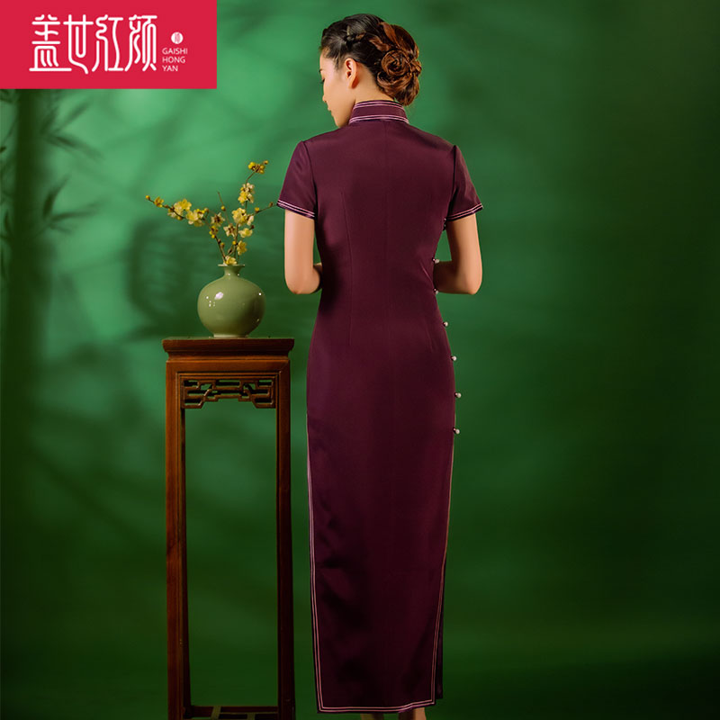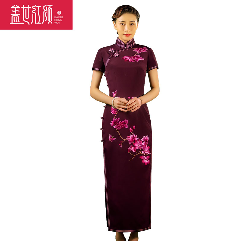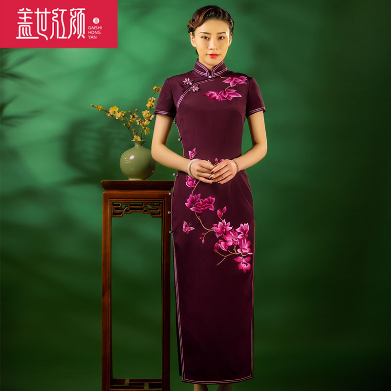 盖世红颜真丝绣花旗袍2023年新款手工刺绣礼服婚庆宴会礼服望红梅