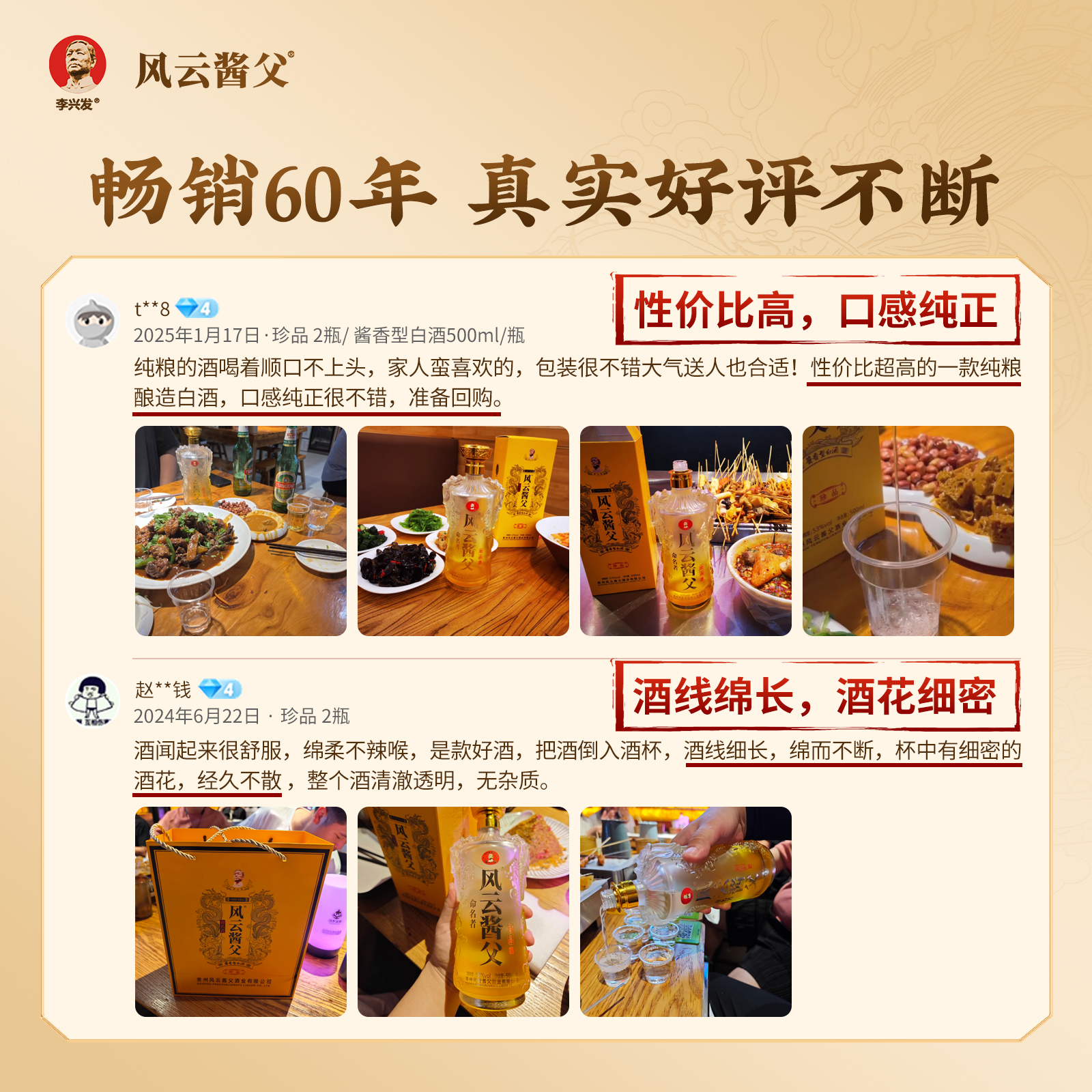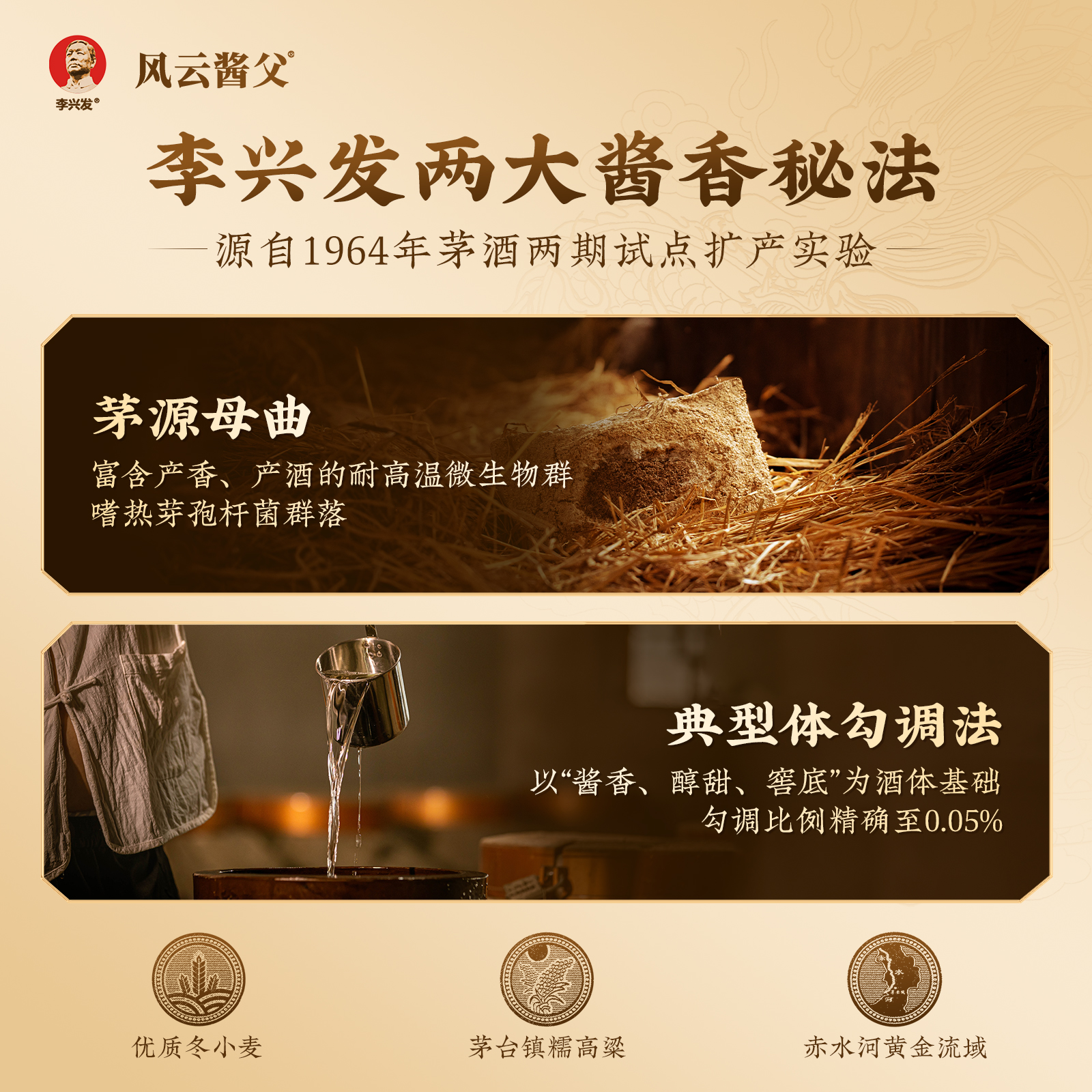 【酒厂直营】风云酱父珍品酱香酒李兴发 老酒53度纯粮 宴请 送礼