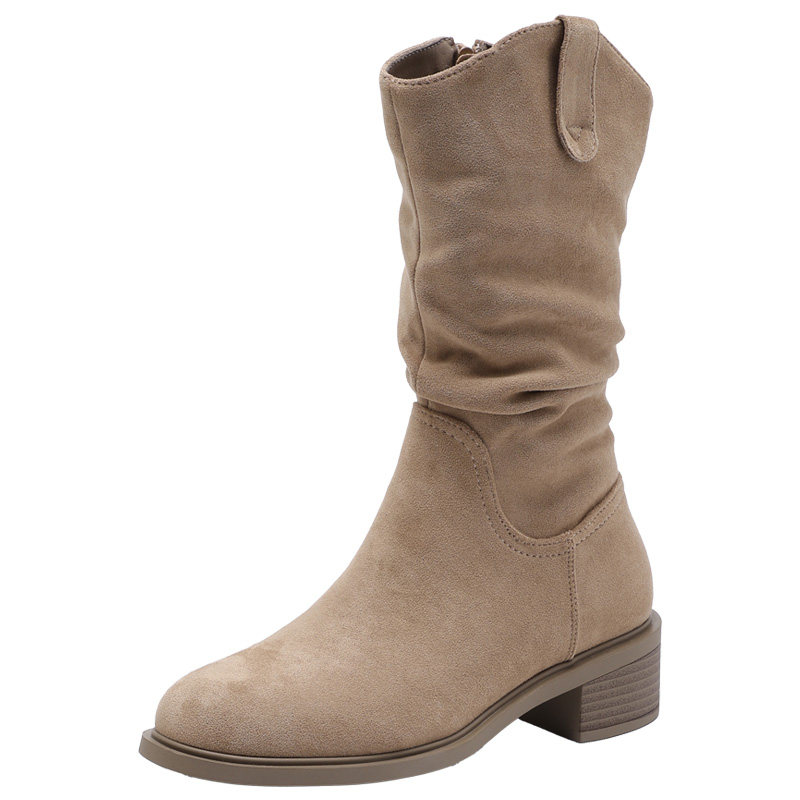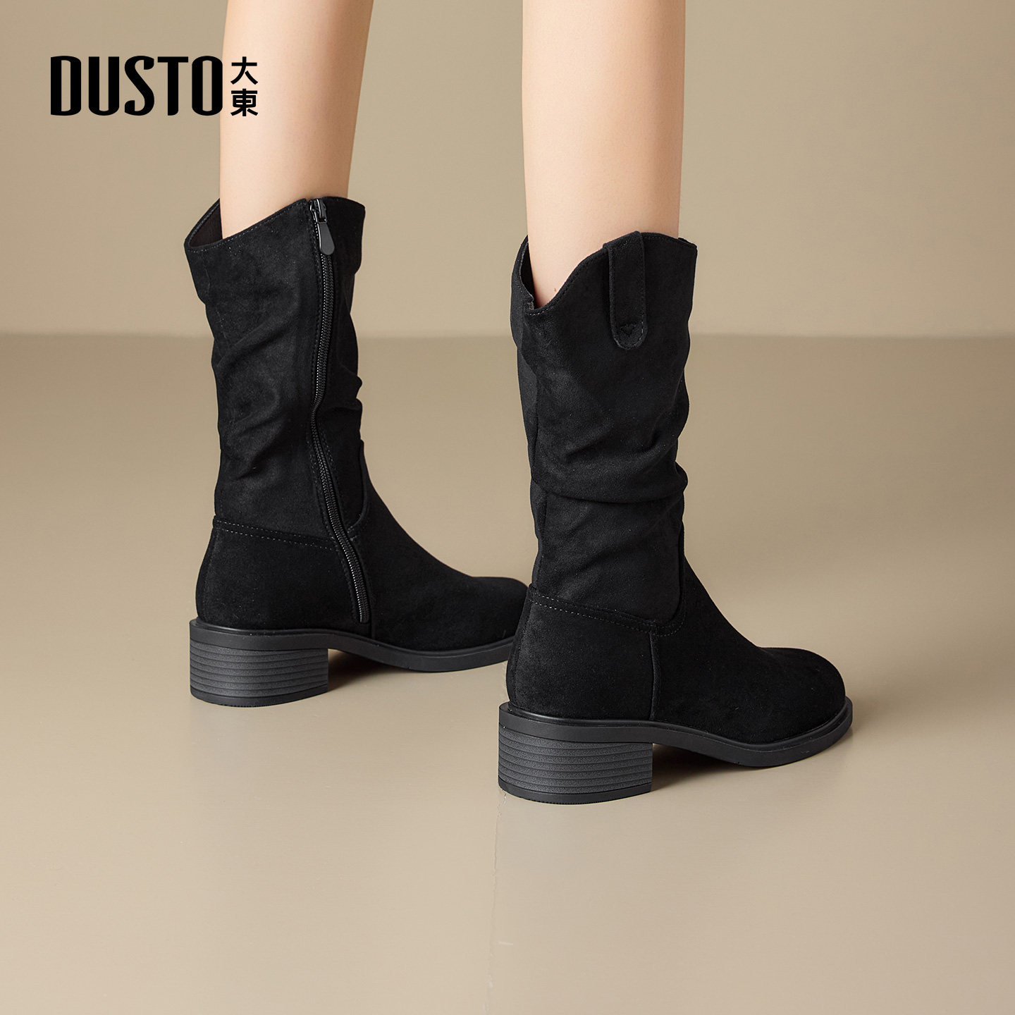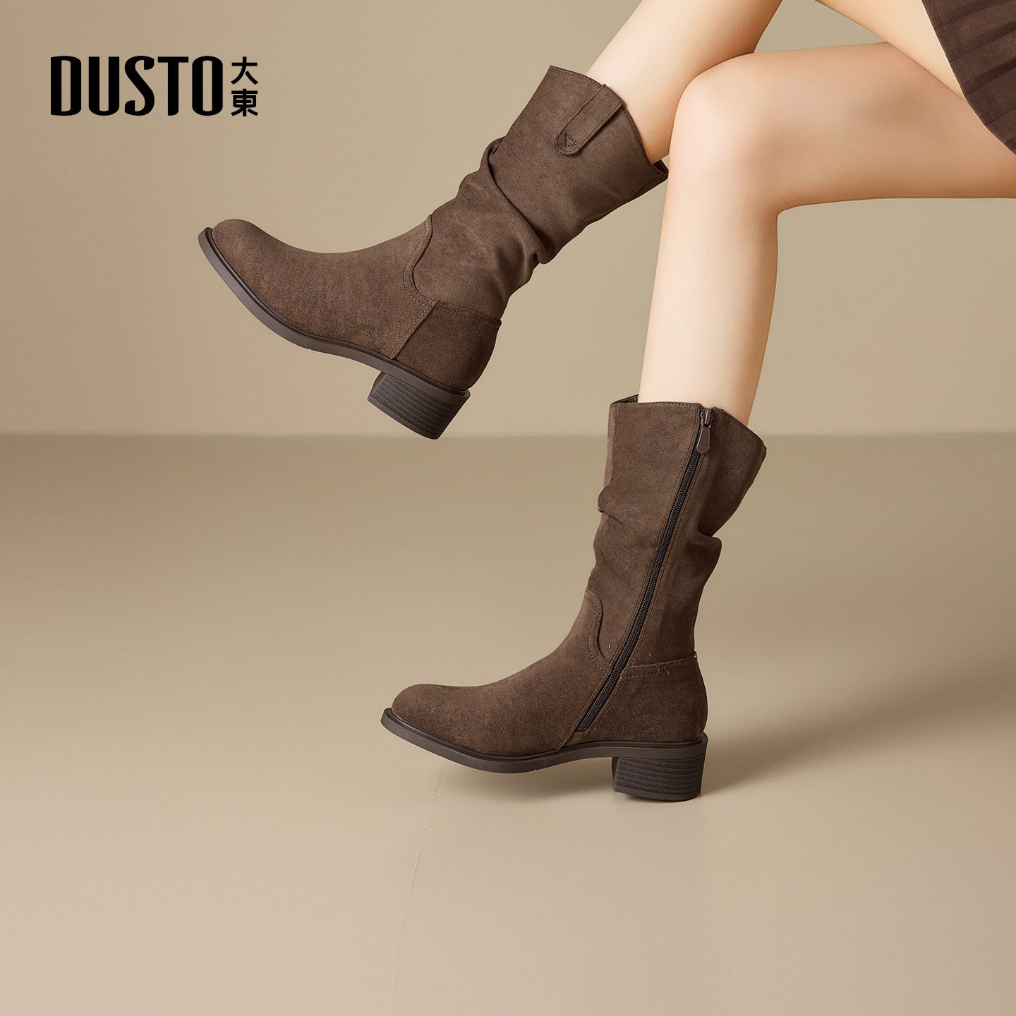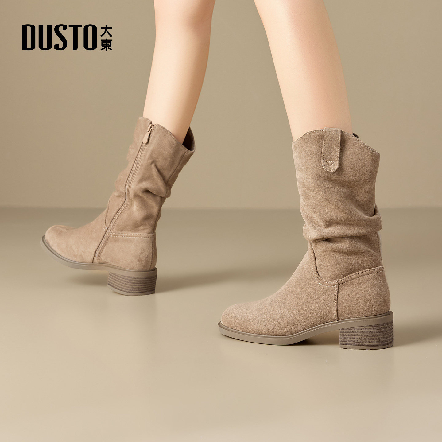 大东官方粗跟短靴女款2025新款冬季复古堆堆靴巨好看卡其色靴子女