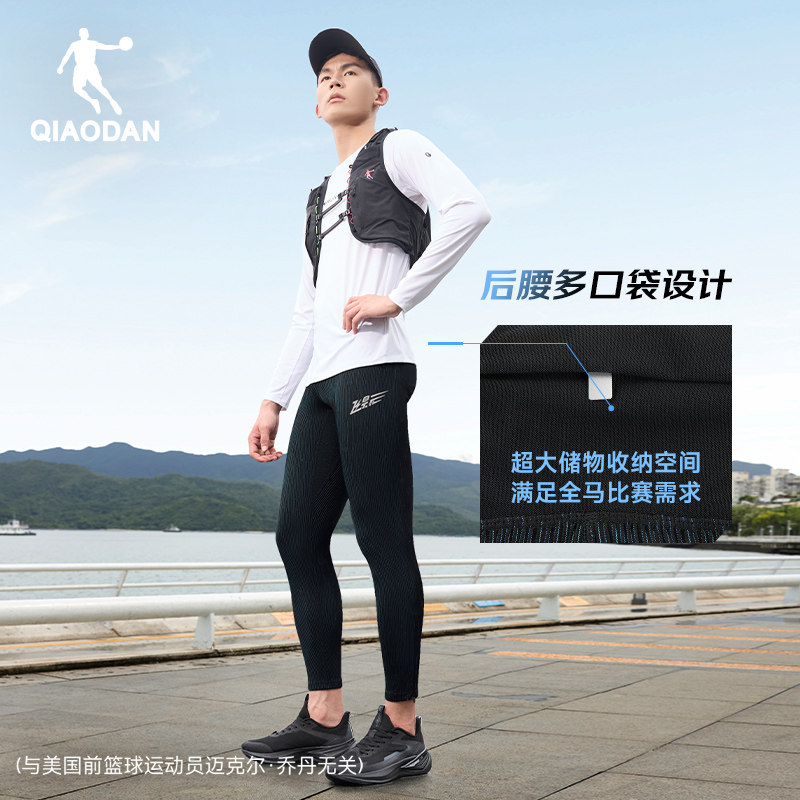 乔丹飞影半弹马拉松专业跑步紧身男压缩长裤子带腰包秋季新款速干