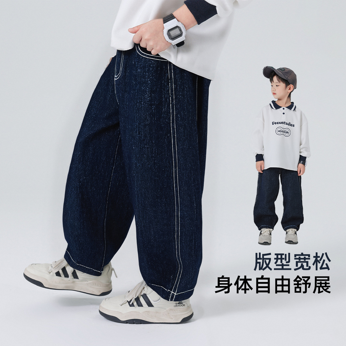 男童裤子春秋款2025儿童牛仔裤棉质舒适中大童洋气时尚休闲裤