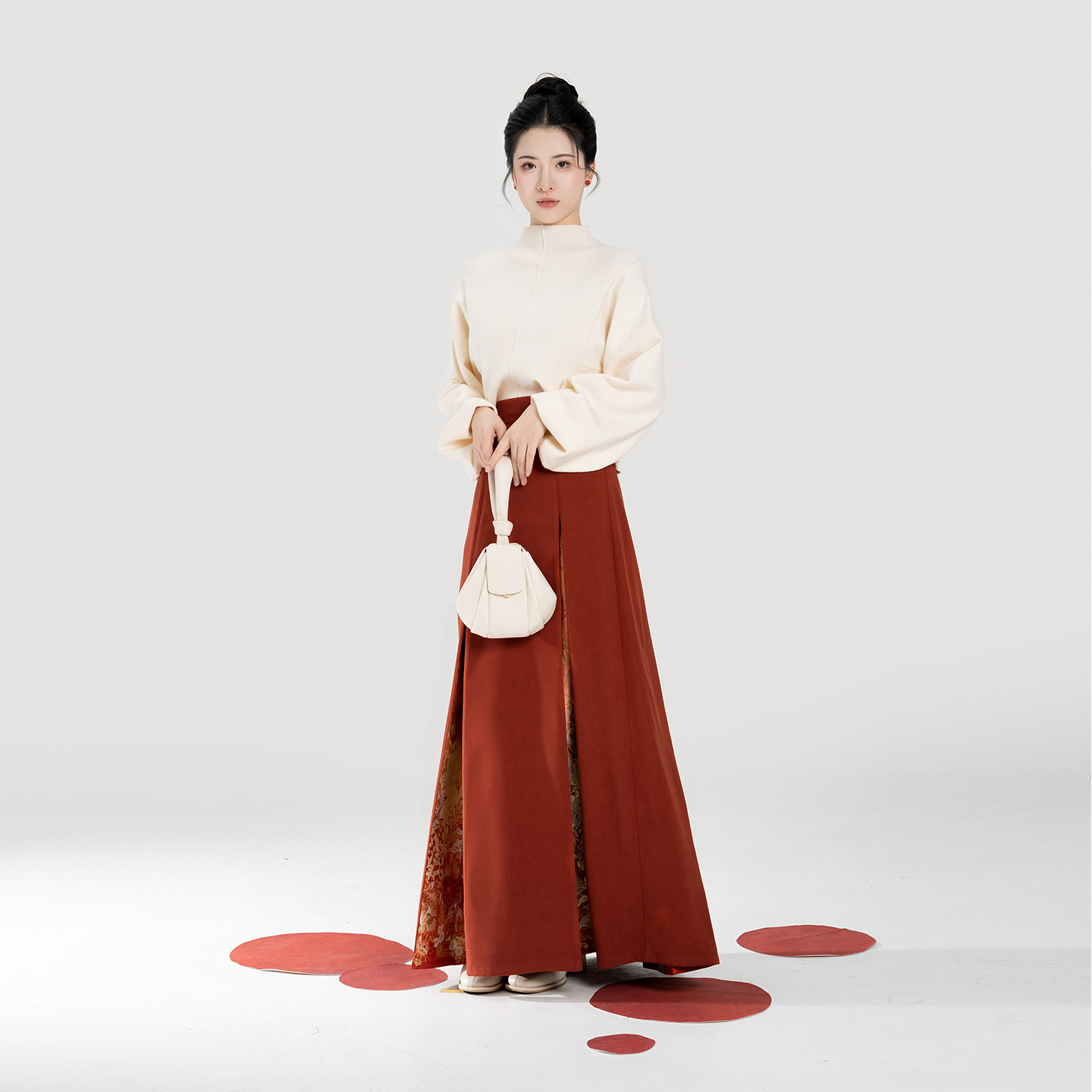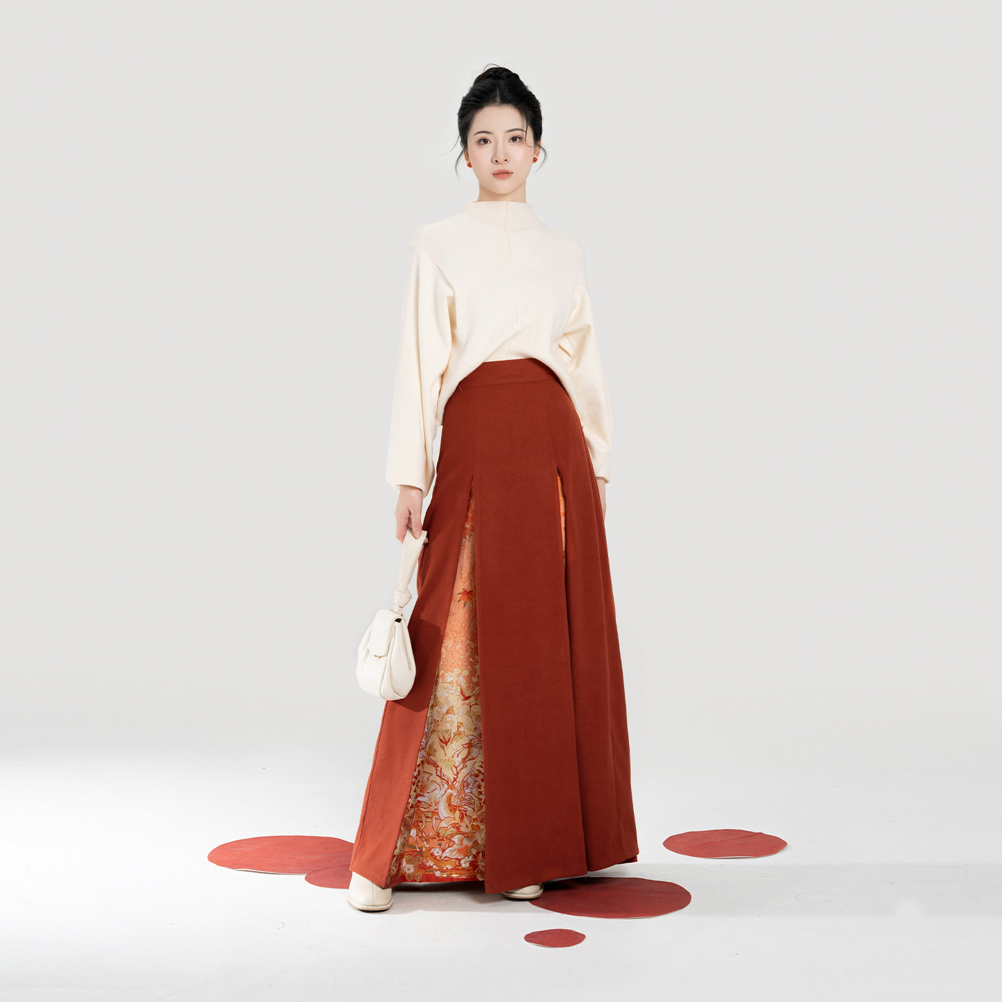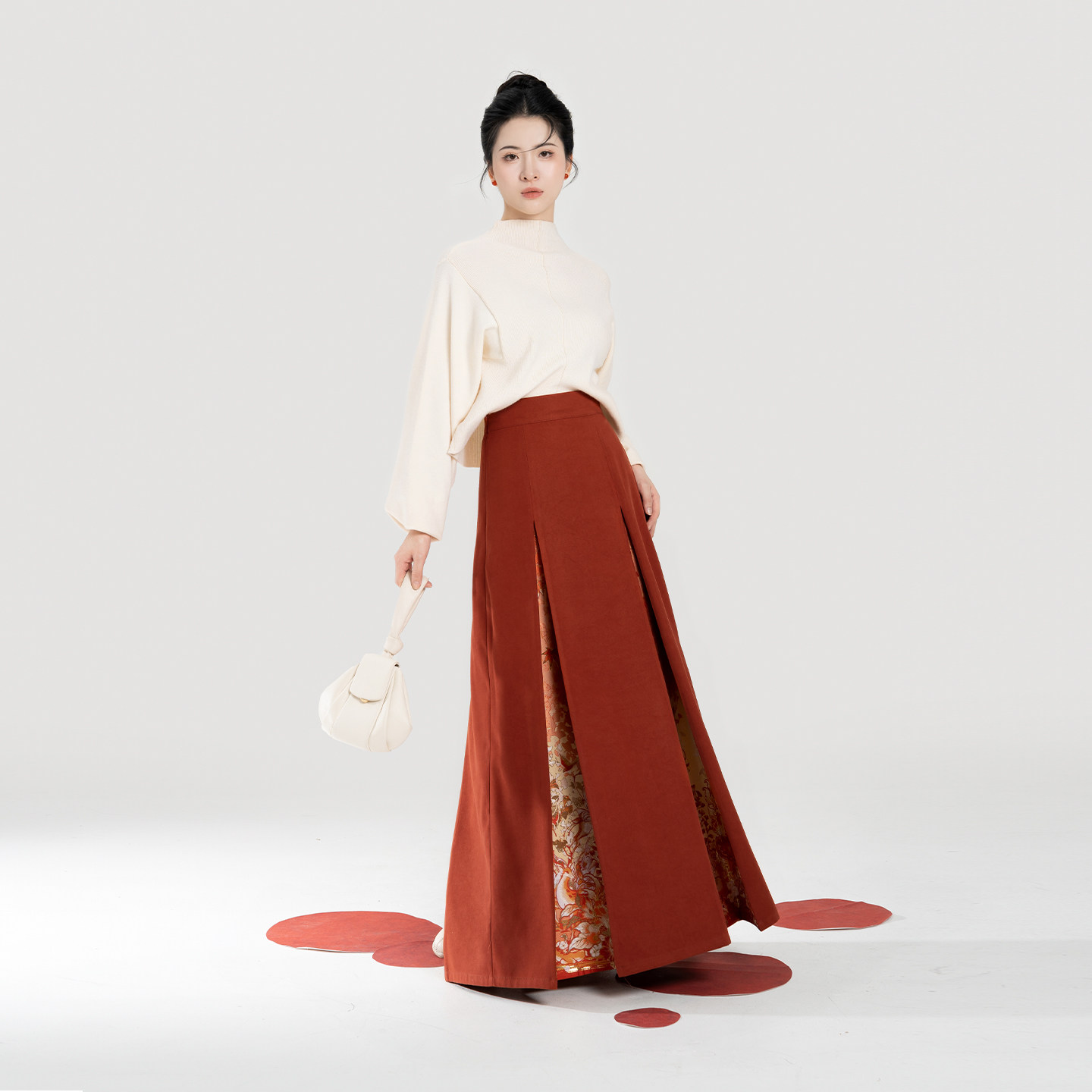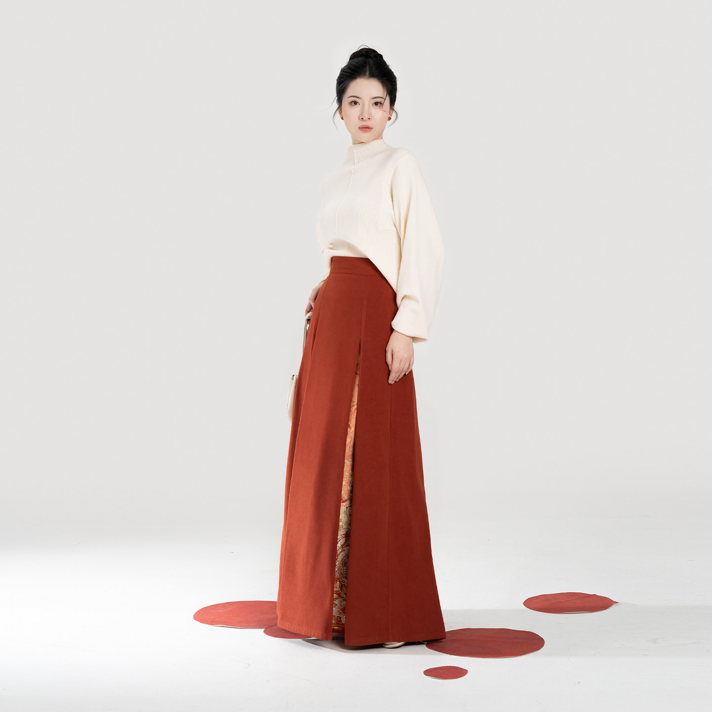 织造司[枫橘]新中式半高领打底毛衣女改良三裥裙遮胯显瘦半身裙子