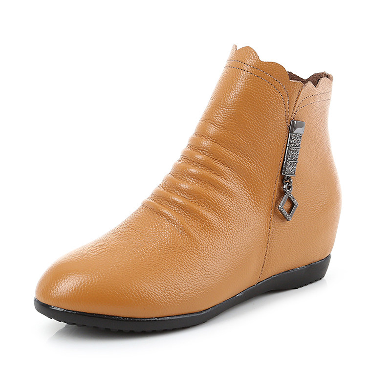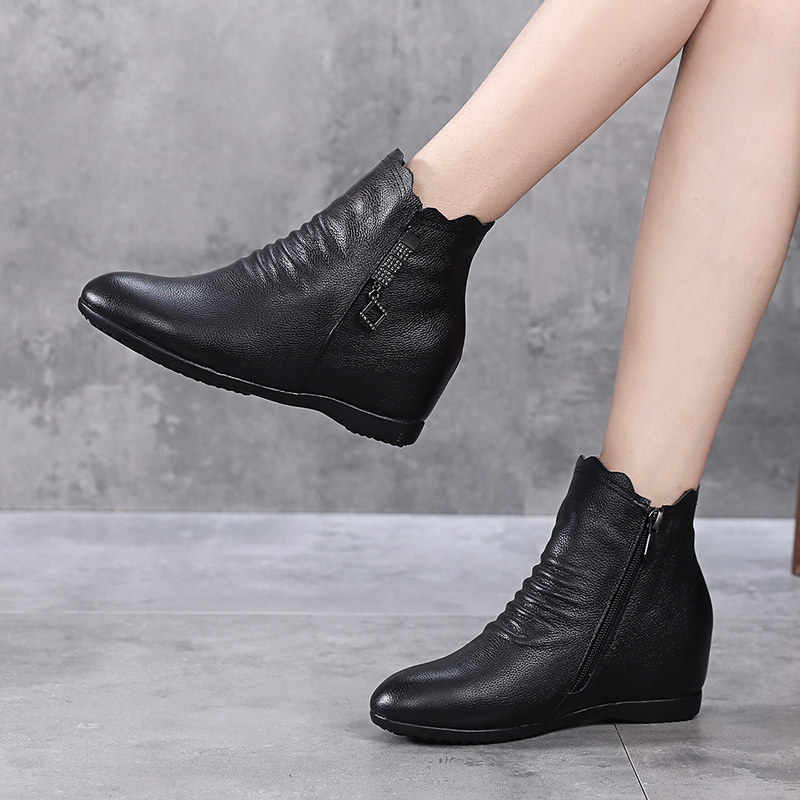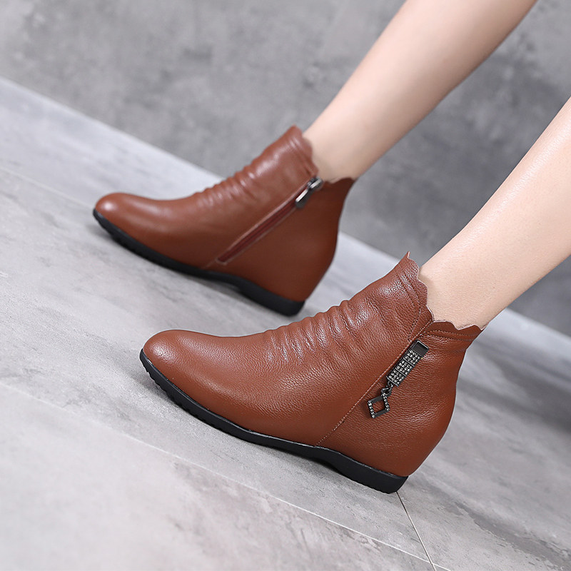 真皮新款内增高女鞋子平底休闲单鞋加绒中跟棉鞋秋冬拉链高帮皮鞋