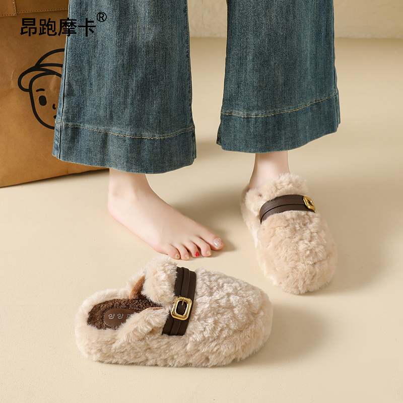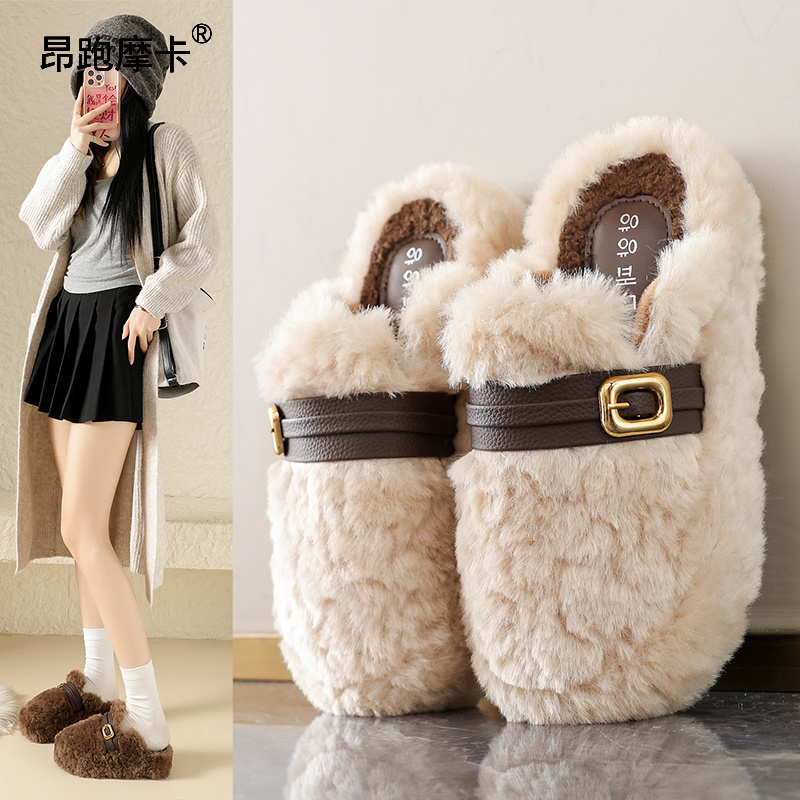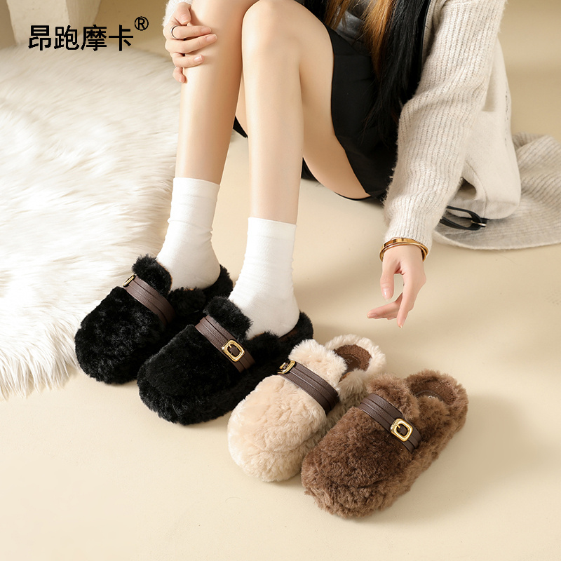 昂跑摩卡厚底包头加绒拖鞋女外穿2025新款秋冬爆款一脚蹬棉拖鞋
