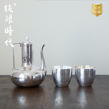 纯银时代 锤目纹酒杯酒壶套组纯银999手工简约高级白酒酒具60ml