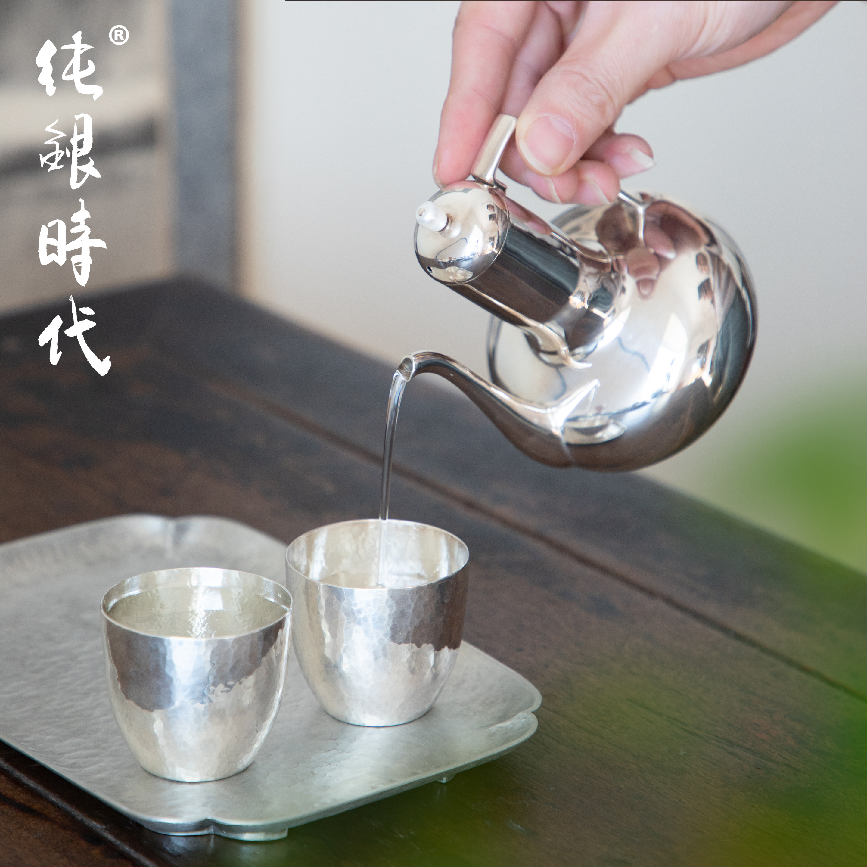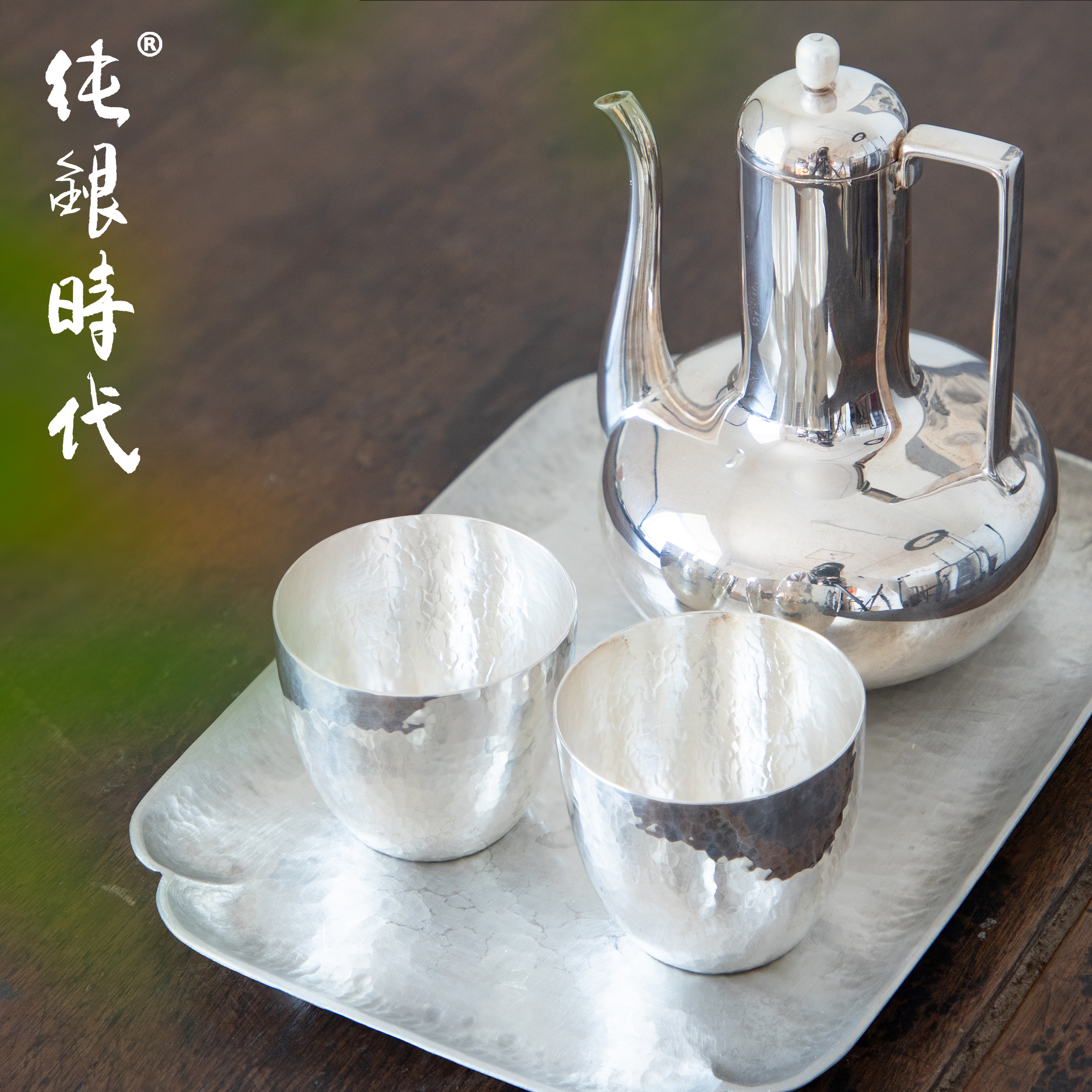 纯银时代纯银锤目纹手工酒杯酒具