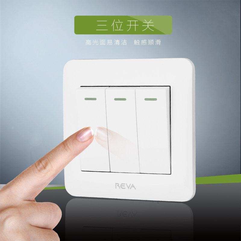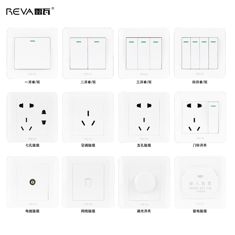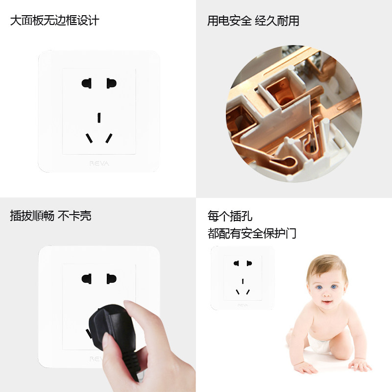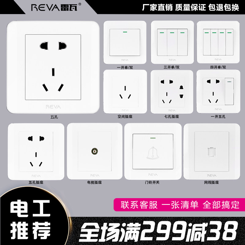 雷瓦开关面板家用86型墙体墙壁暗线多孔一开带五孔插座暗装 开关