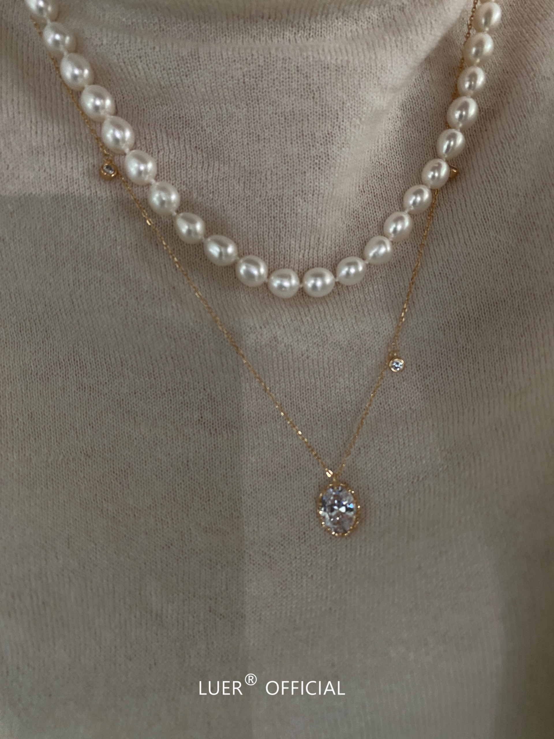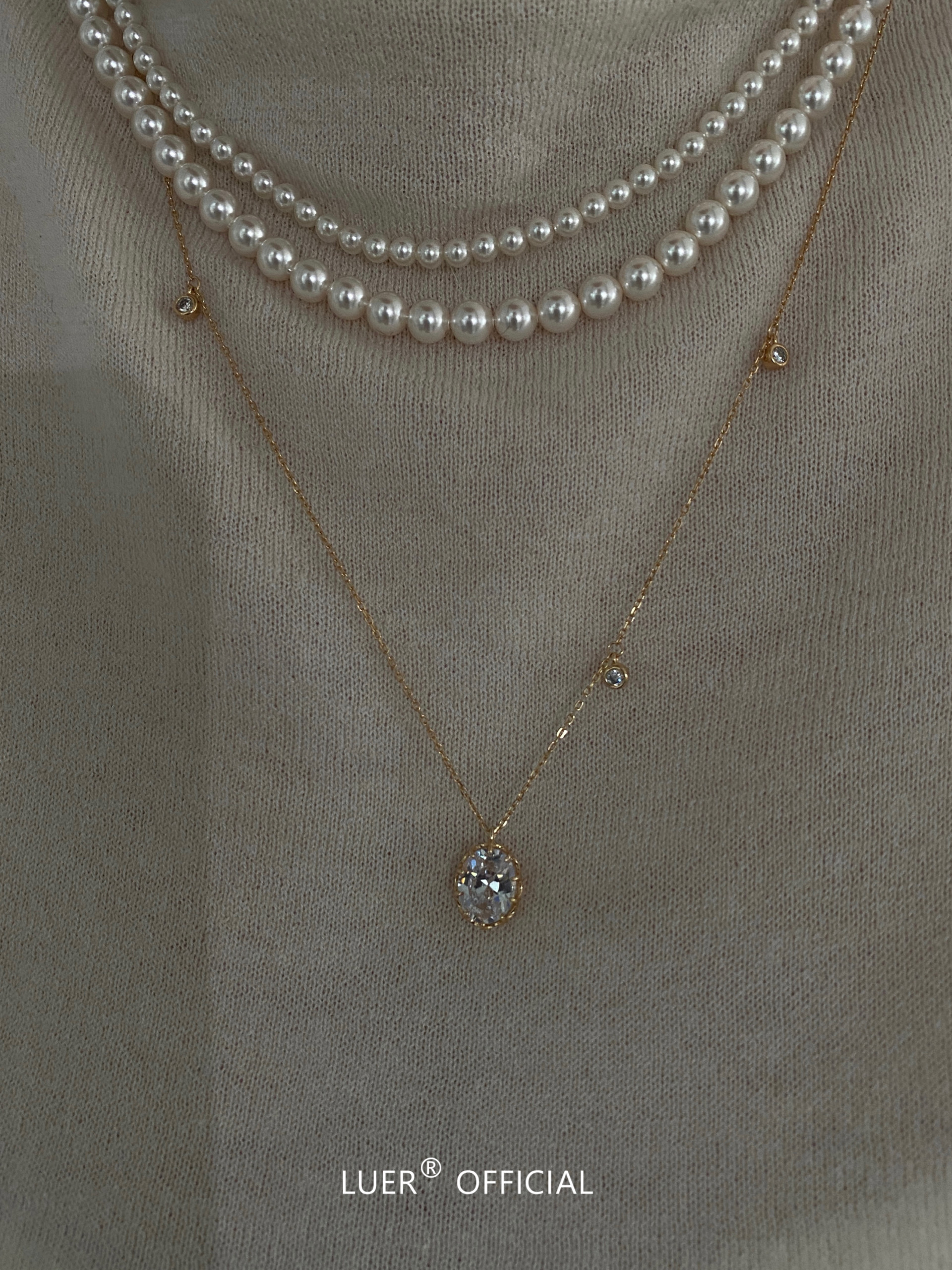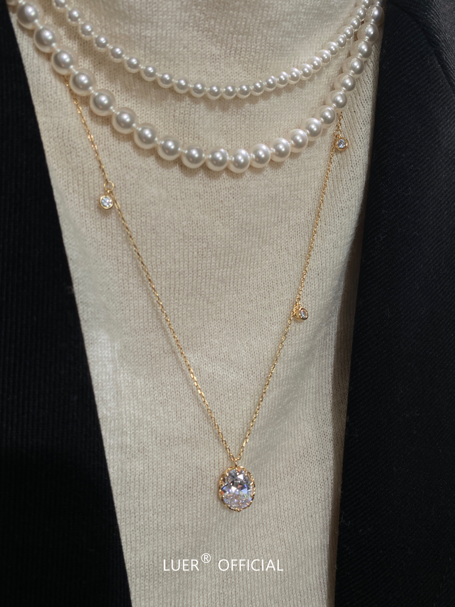 法式进口闪锆纯银毛衣链 两面可戴 香槟金