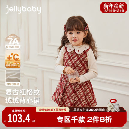 [保暖加厚]连衣裙女童红色小香风背心裙子大童深秋宝宝秋冬衣服