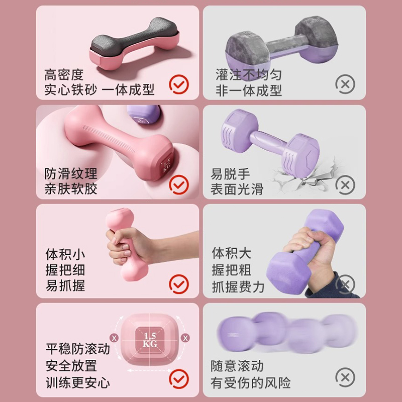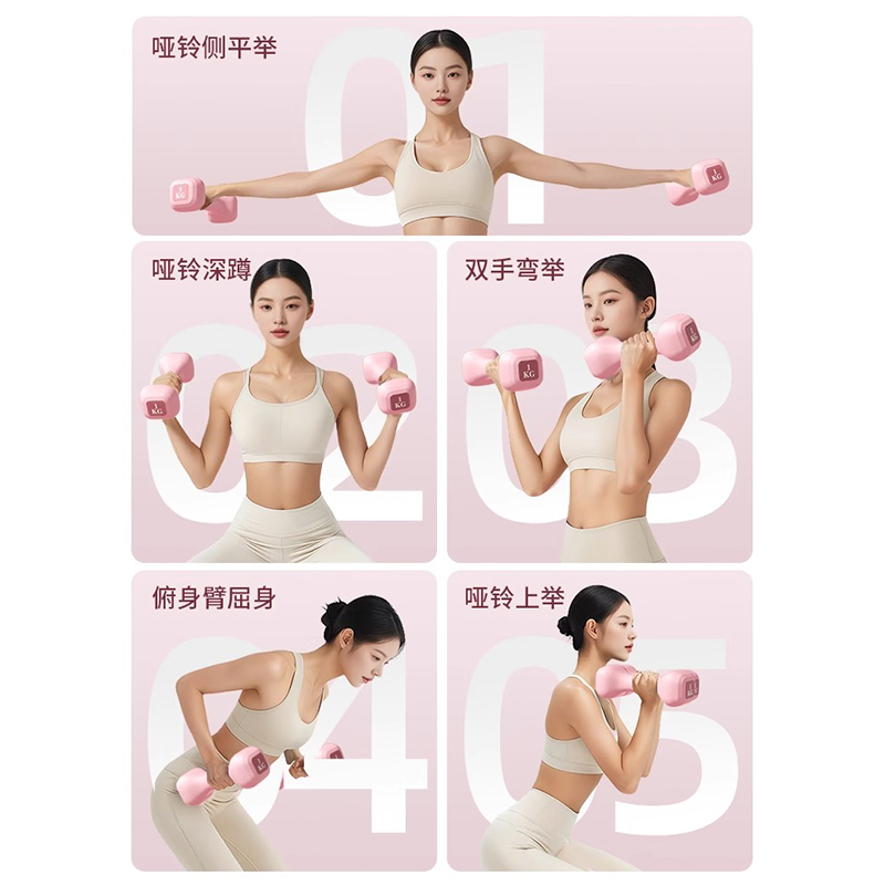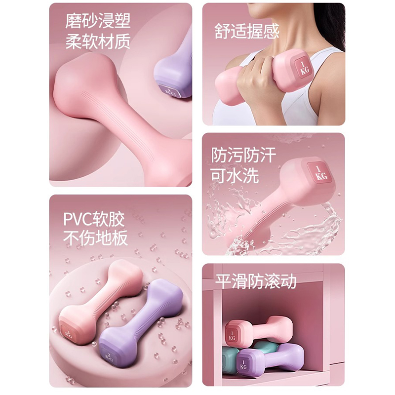 德国-SLD/哑铃女士健身家用瑜伽训练2kg1kg一对练臂肌包胶小哑铃