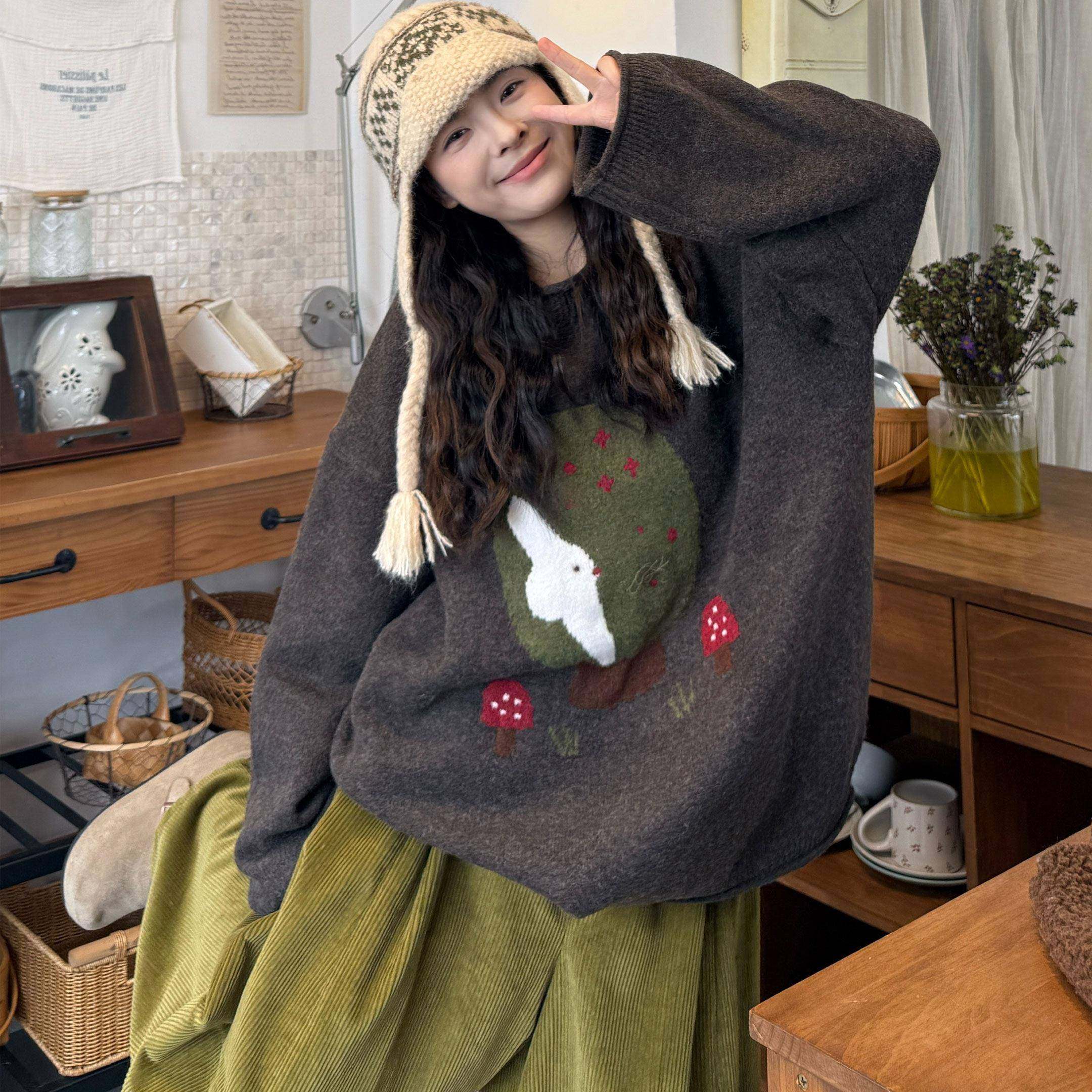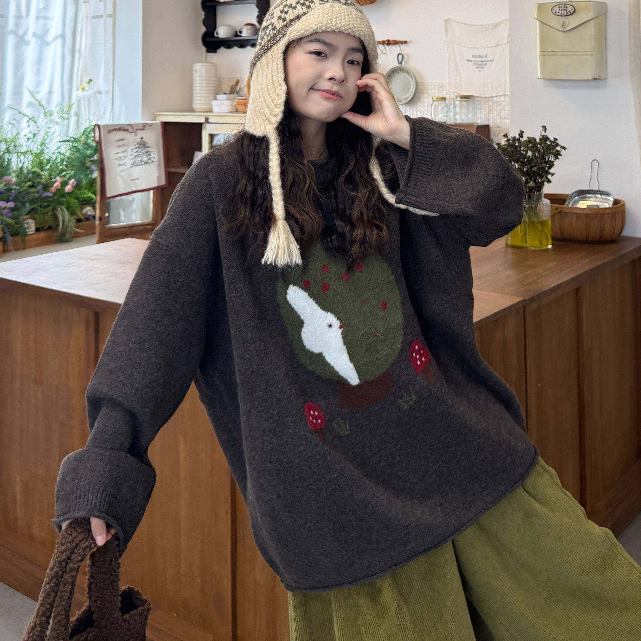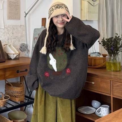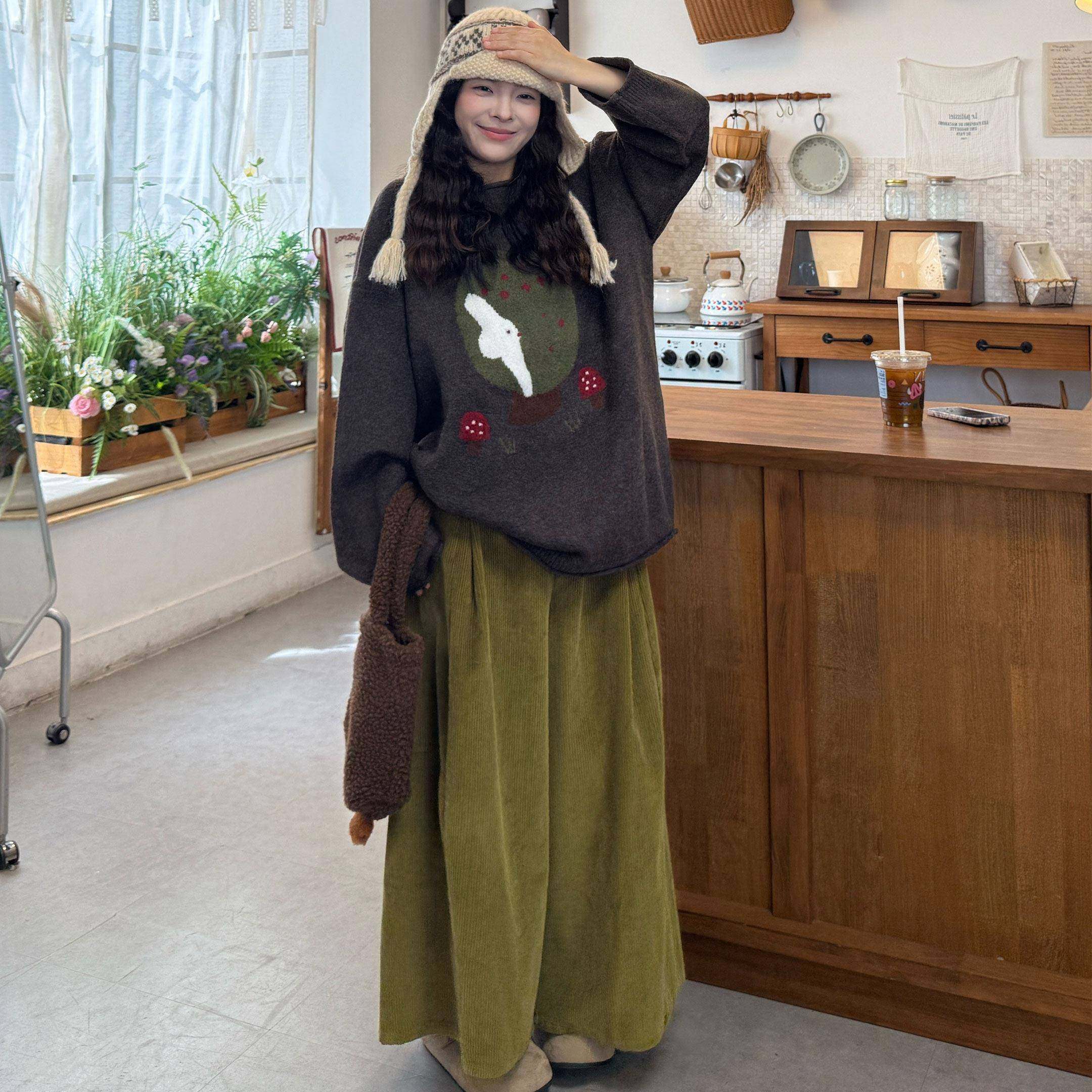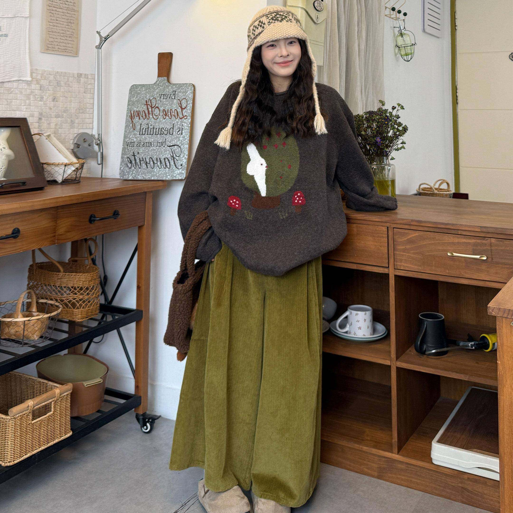 大码女装胖mm秋冬韩版宽松显瘦软糯提花针织毛衣+灯芯绒裤子套装