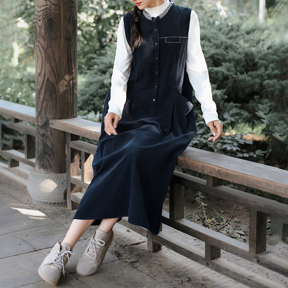 灯芯绒连衣裙女2025秋冬新款背心裙气质背带裙复古a字裙无袖长裙