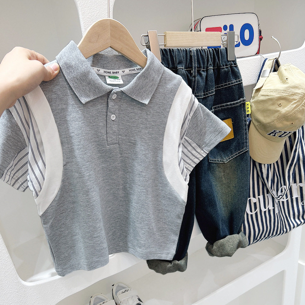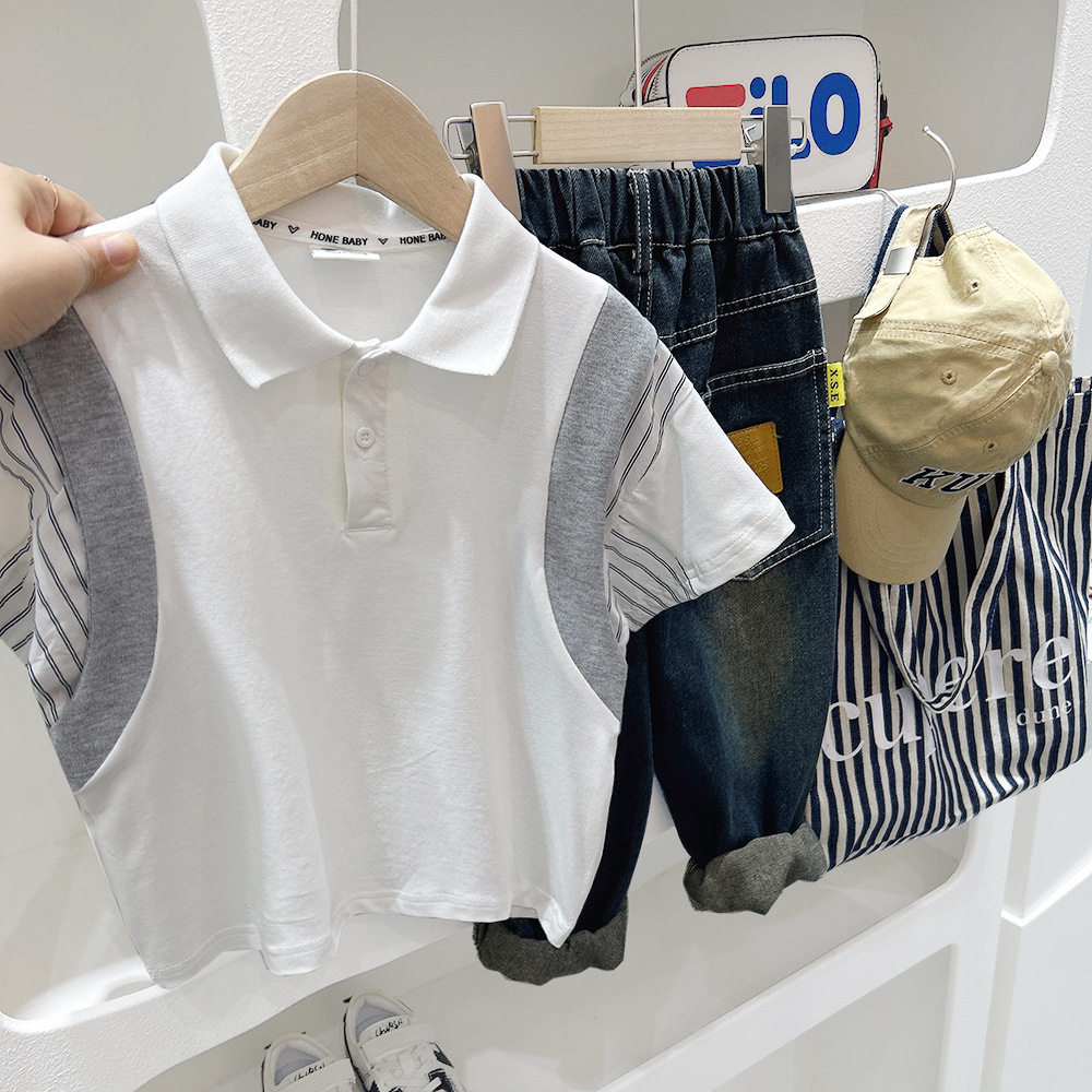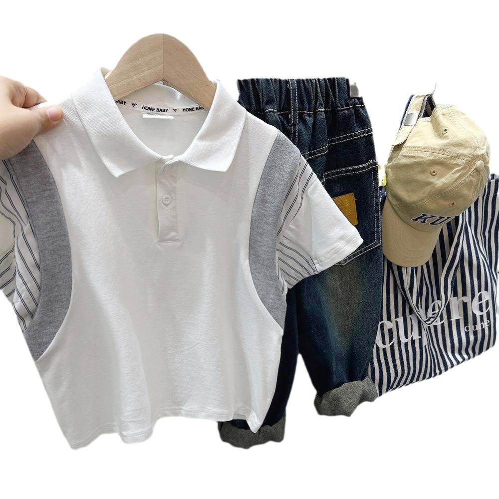 男童短袖T恤夏季儿童2024新款潮半袖夏装中大童假两件休闲POLO衫