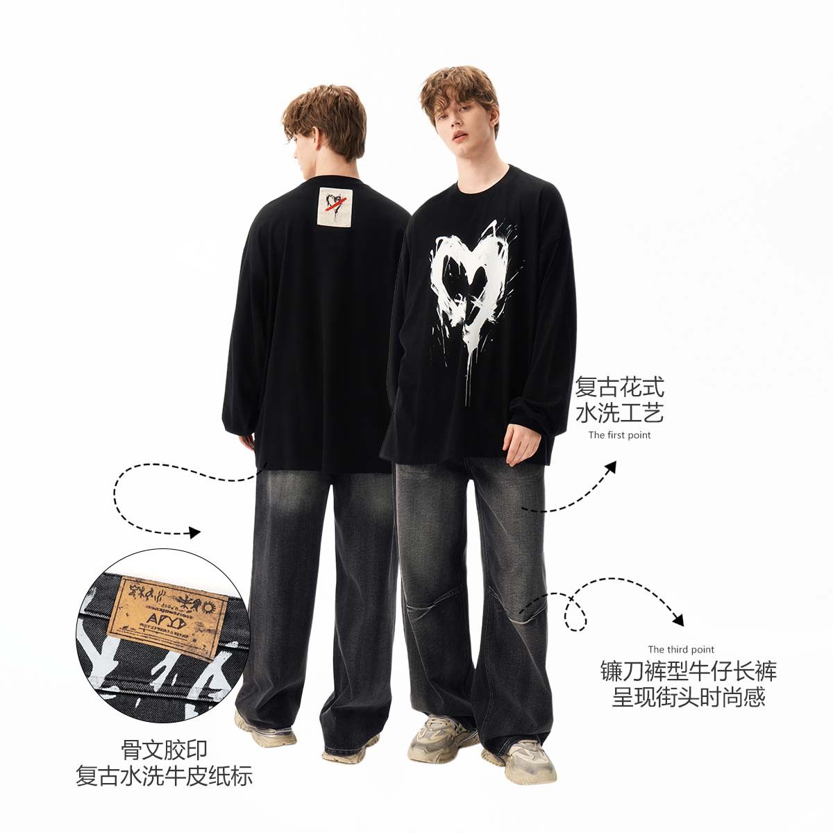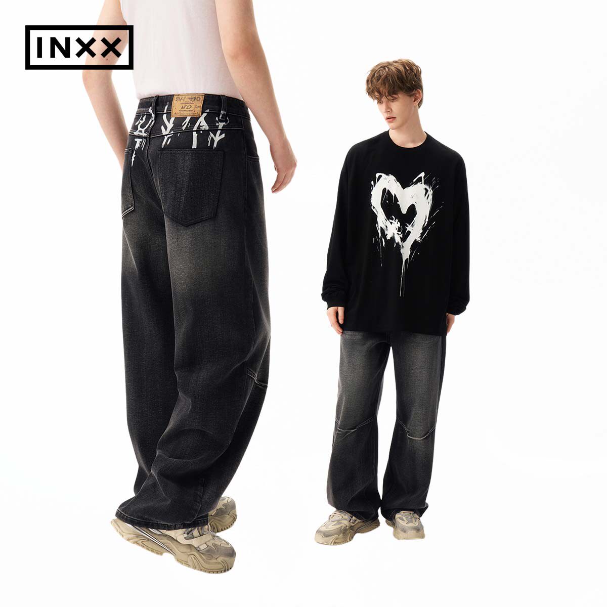 INXX复古水洗牛仔长裤男立体裁剪镰刀裤美式休闲黑色直筒裤