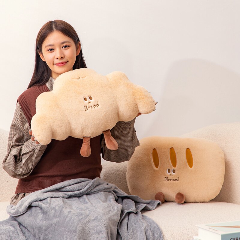 卡通治愈系面包抱枕法棍牛角包毛绒玩具黄油饼干可爱靠垫女生礼物