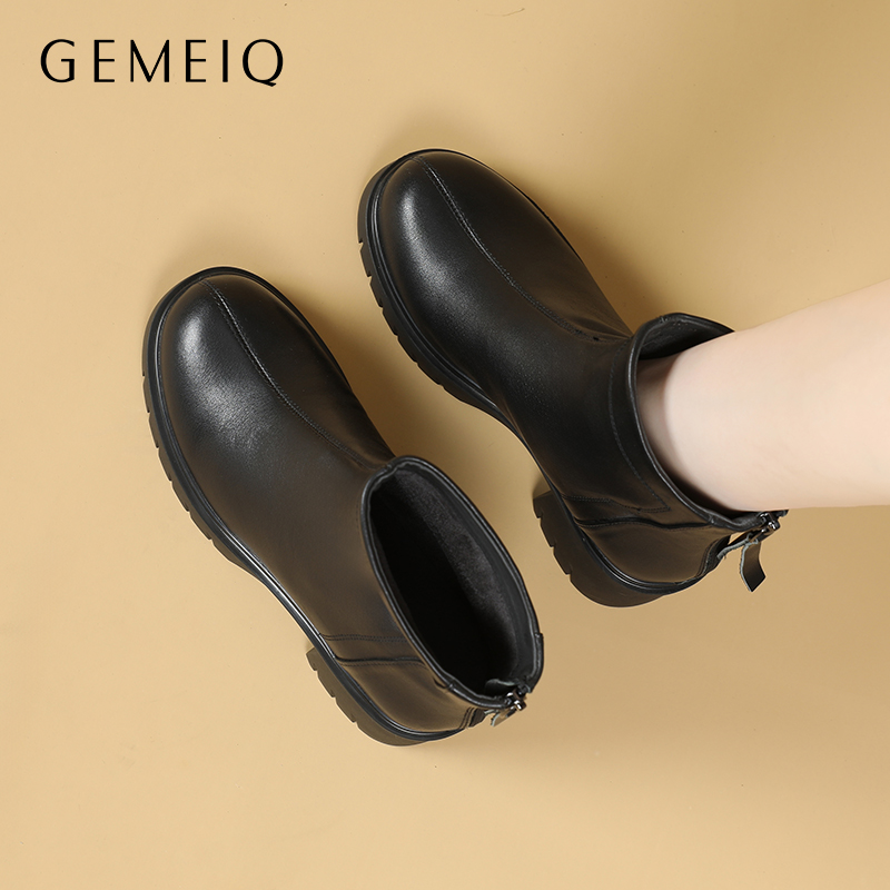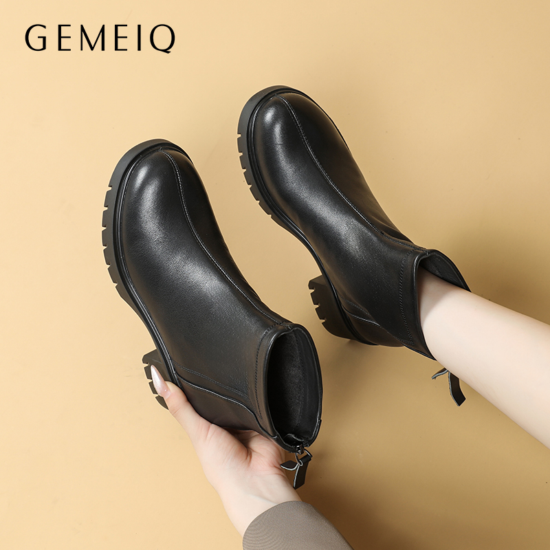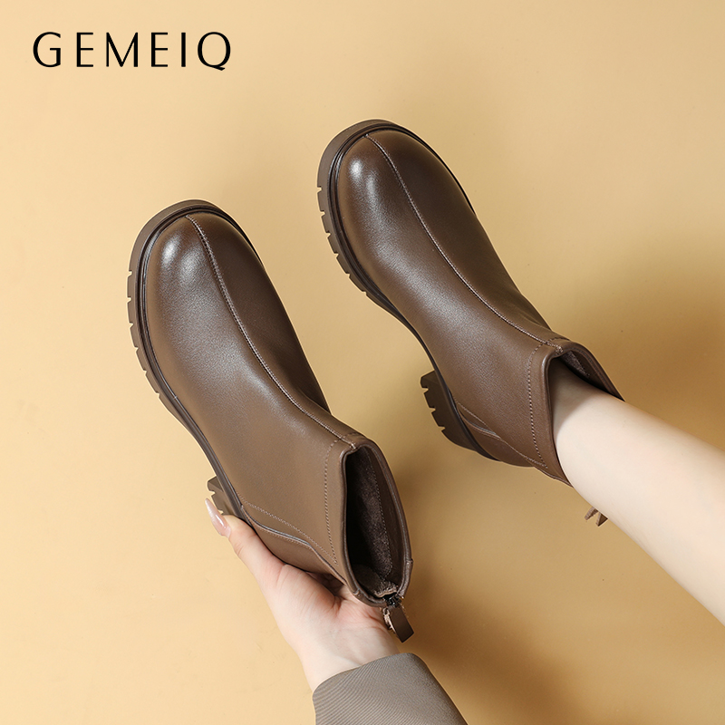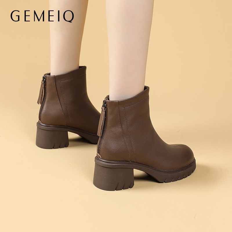 戈美其加绒短靴秋冬新款粗跟厚底英伦风马丁靴女短靴百搭潮流女靴