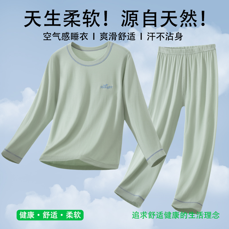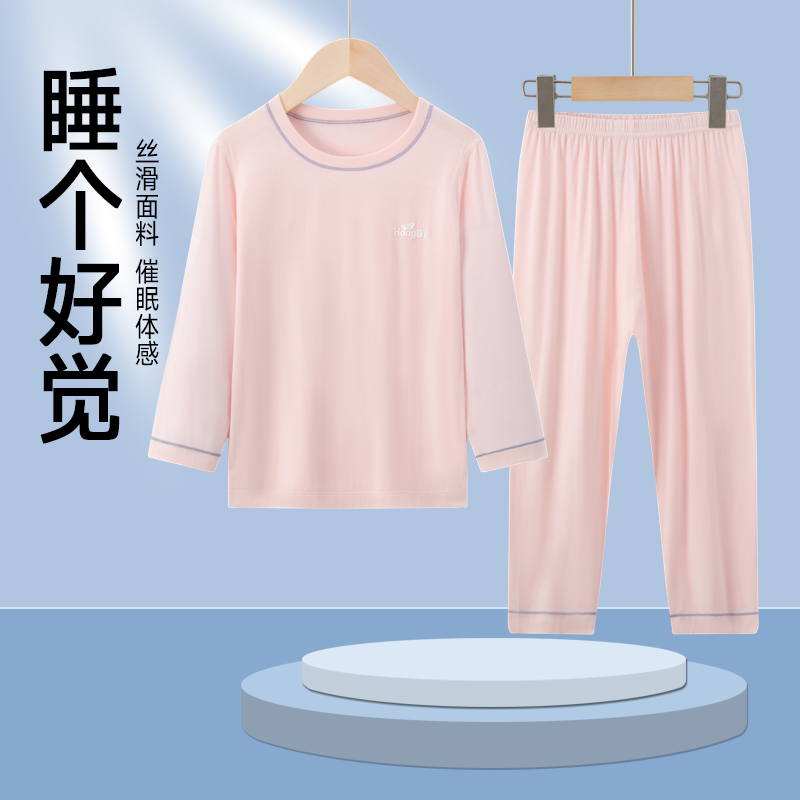 春秋儿童睡衣莫代尔男童家居服夏男孩空调服女童大童秋衣秋裤套装