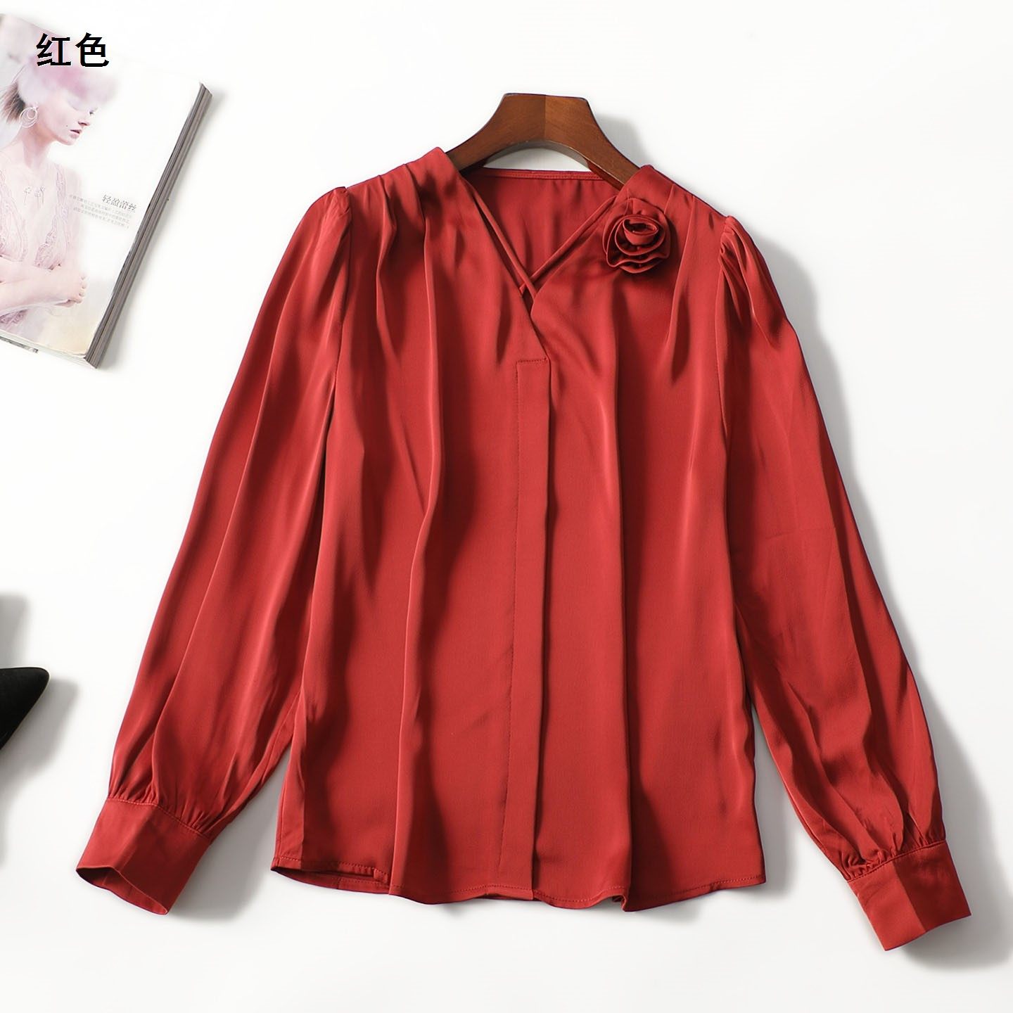248054超值洋气女人味法式气质百搭精品女装春中长款套头长袖衬衫