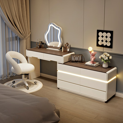 2025新款梳妆台卧室现代简约小户型全实木化妆桌子床尾收纳柜一体