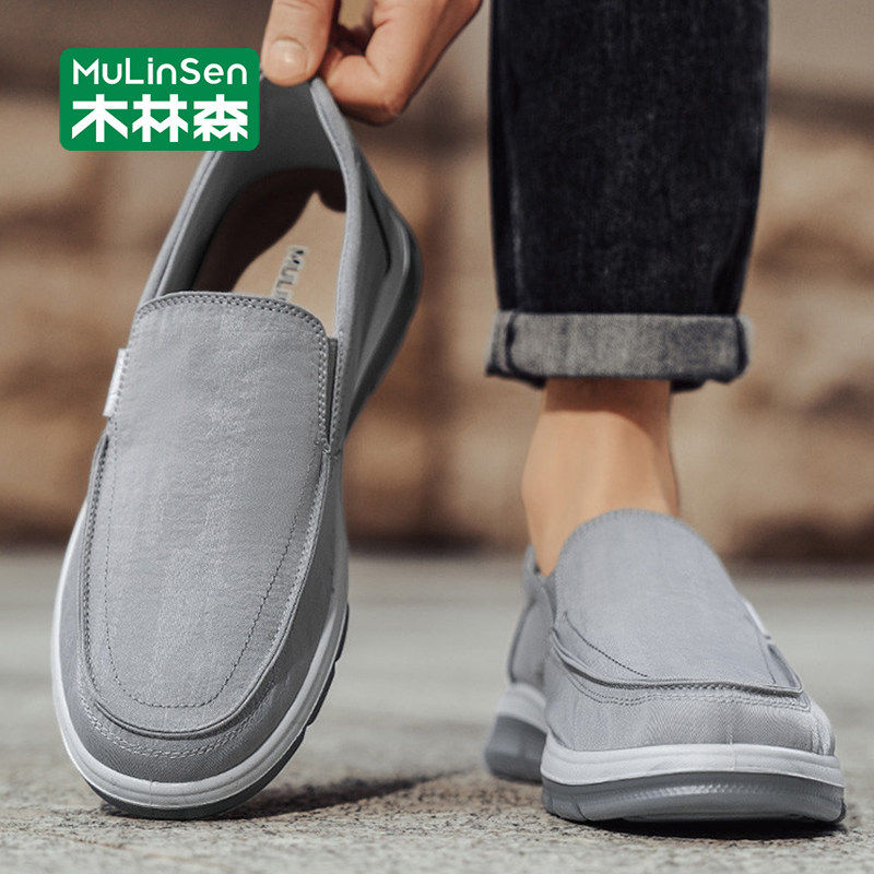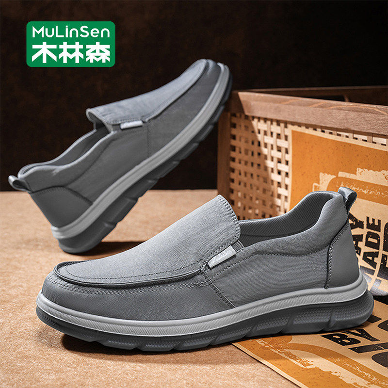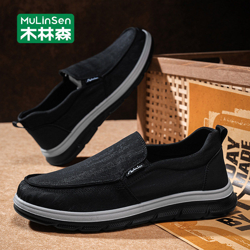 木林森老北京布鞋男春季2026新款懒人一脚蹬工作休闲爸爸开车板鞋