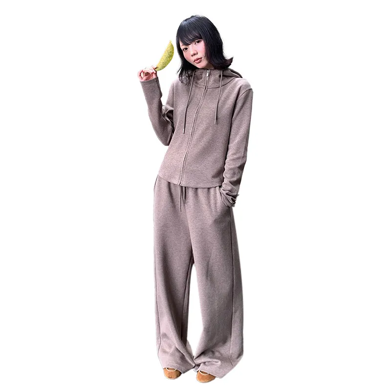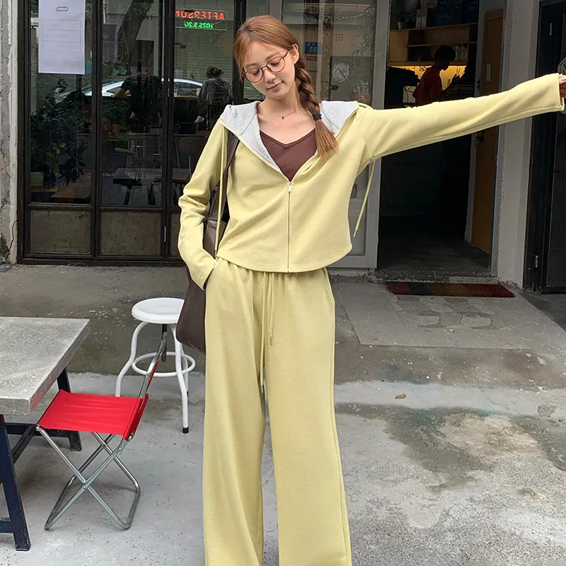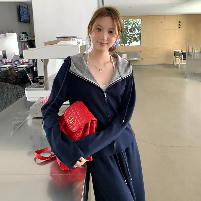 秋冬撞色连帽卫衣运动套装女时尚显瘦长裤气质拉链开衫两件套外套