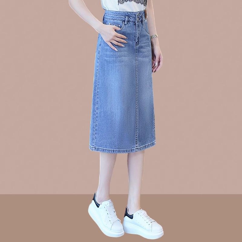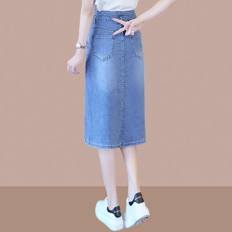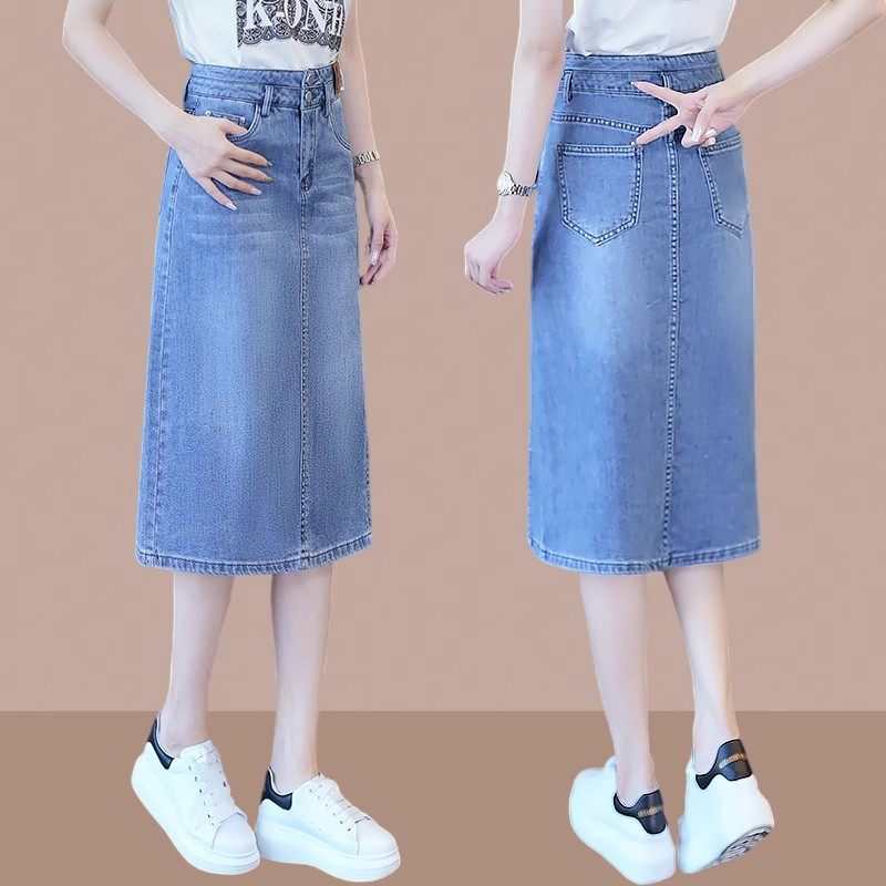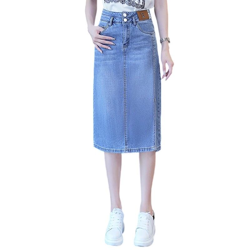 开叉牛仔半身裙女中长款2025年夏季新款a字高腰显瘦一步包臀裙子