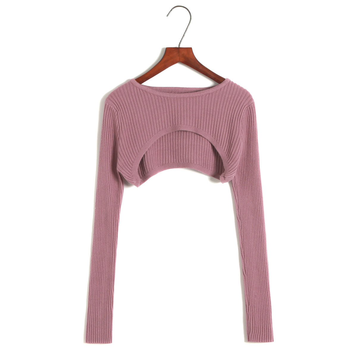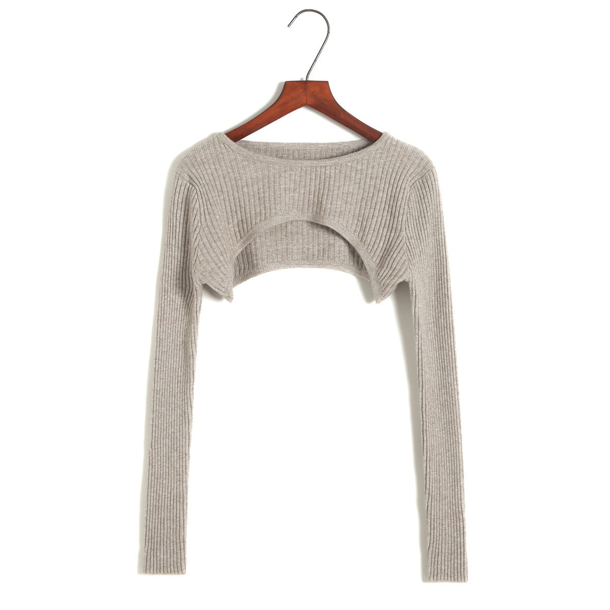 温柔风薄款春秋超短款套头针织衫小披肩女外搭长袖抗条外套毛衣