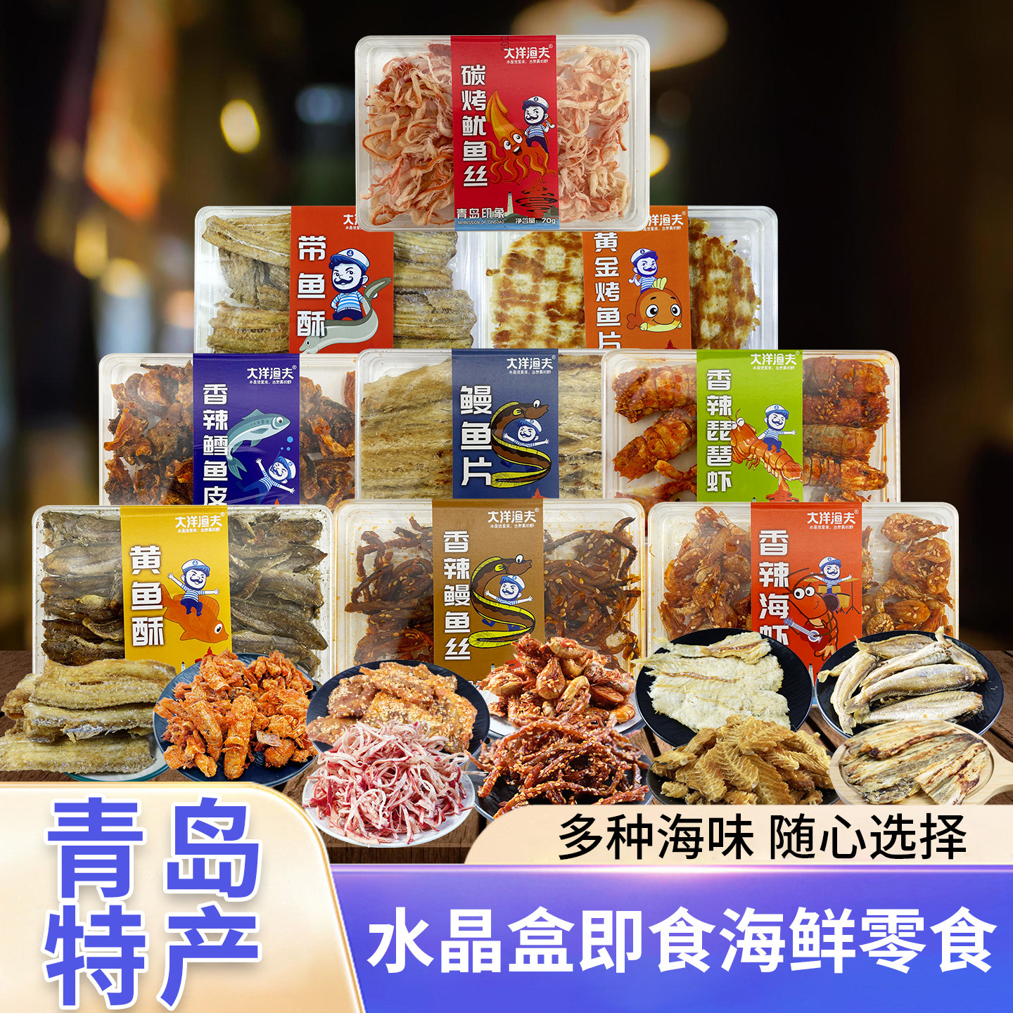 青岛特产大洋渔夫水晶盒干海鲜海味零食小吃烤鱼片鱿鱼丝伴手礼