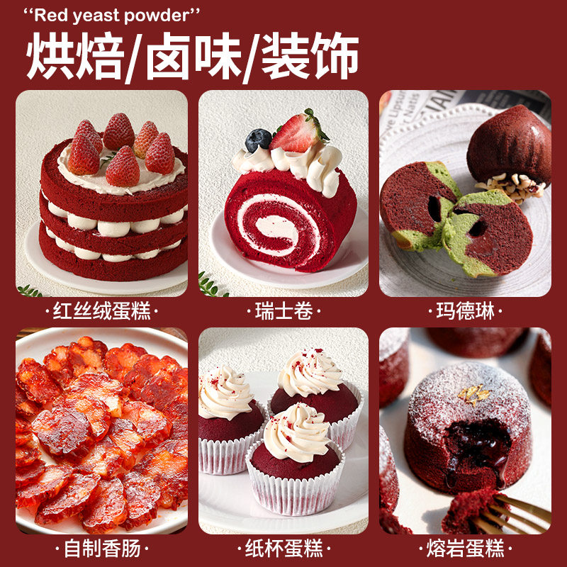 白岛天然红曲米粉烘焙食用红色素红曲粉香肠卤肉红丝绒蛋糕原料