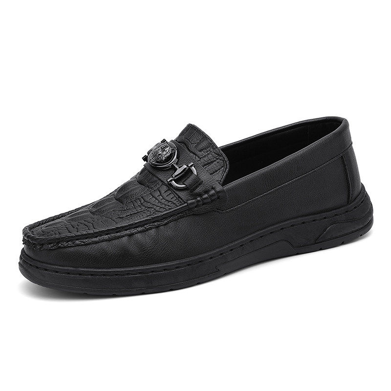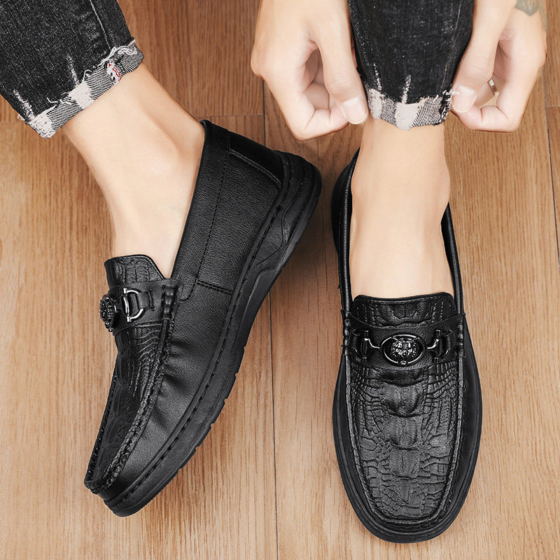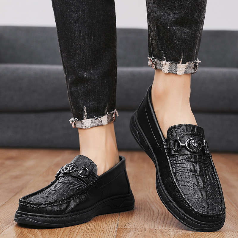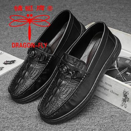 蜻蜓牌豆豆男鞋夏季商务黑色休闲皮鞋懒人一脚蹬软底防滑乐福潮鞋