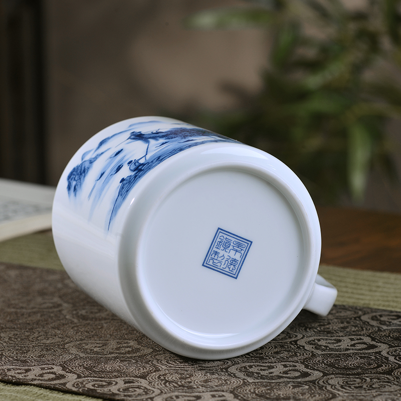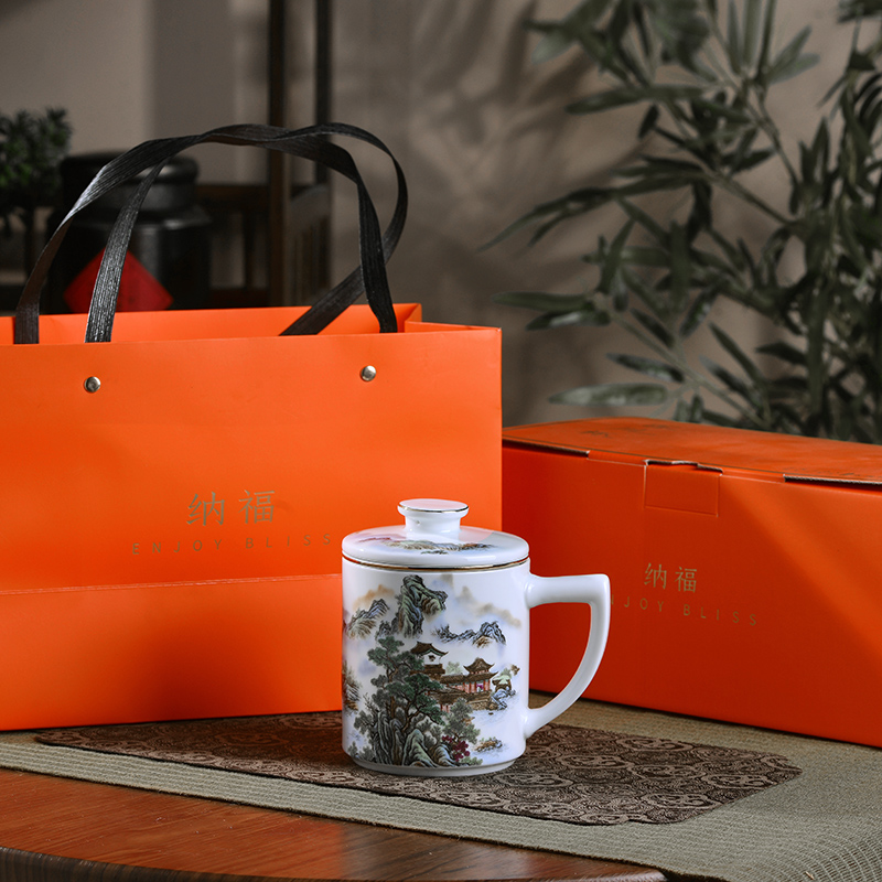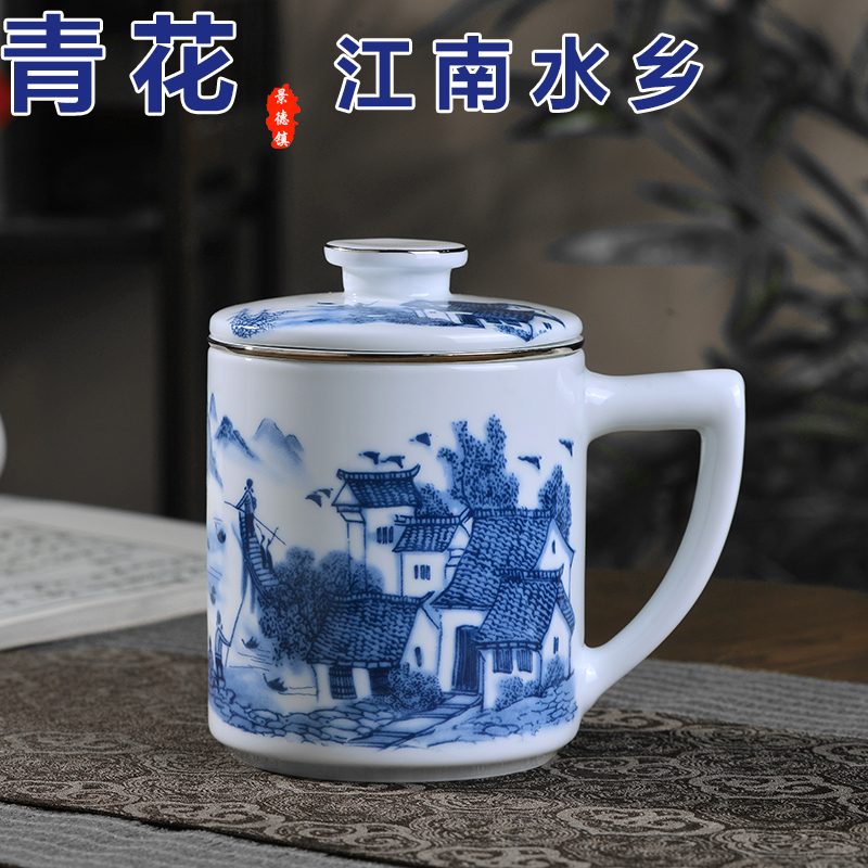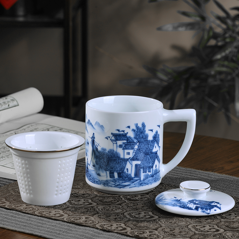 景德镇陶瓷泡茶杯茶水分离过滤办公室马克杯办公室带盖带把送礼
