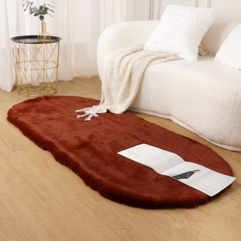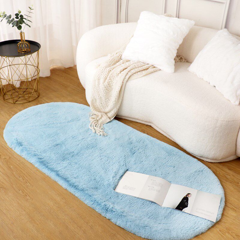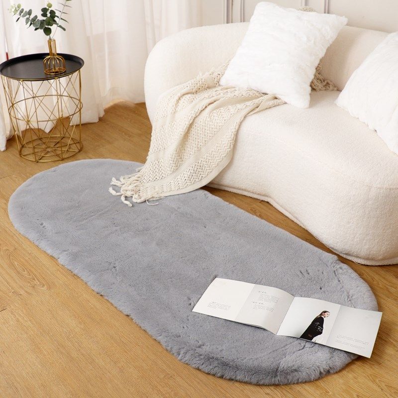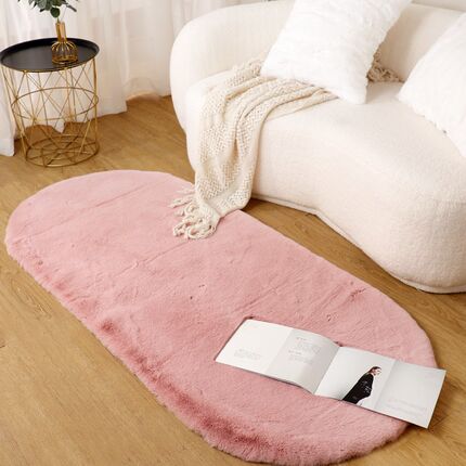 椭圆形短毛绒地毯客厅茶几垫卧室床边毯加厚仿兔毛地垫洗定制