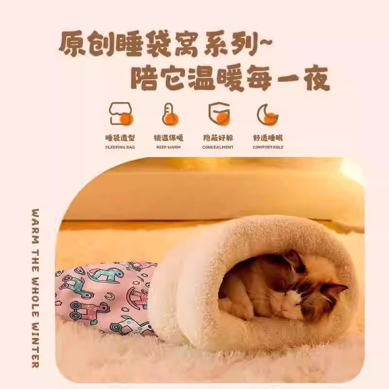 隧道形猫窝犬窝寒冬暖护全裹软猫榻萌宠用品幼猫软褥猫软垫喵睡袋