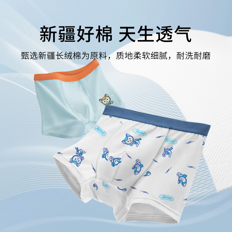 猫人儿童纯棉内裤男童a类抗菌平角裤中大童短裤男孩全棉四角裤头