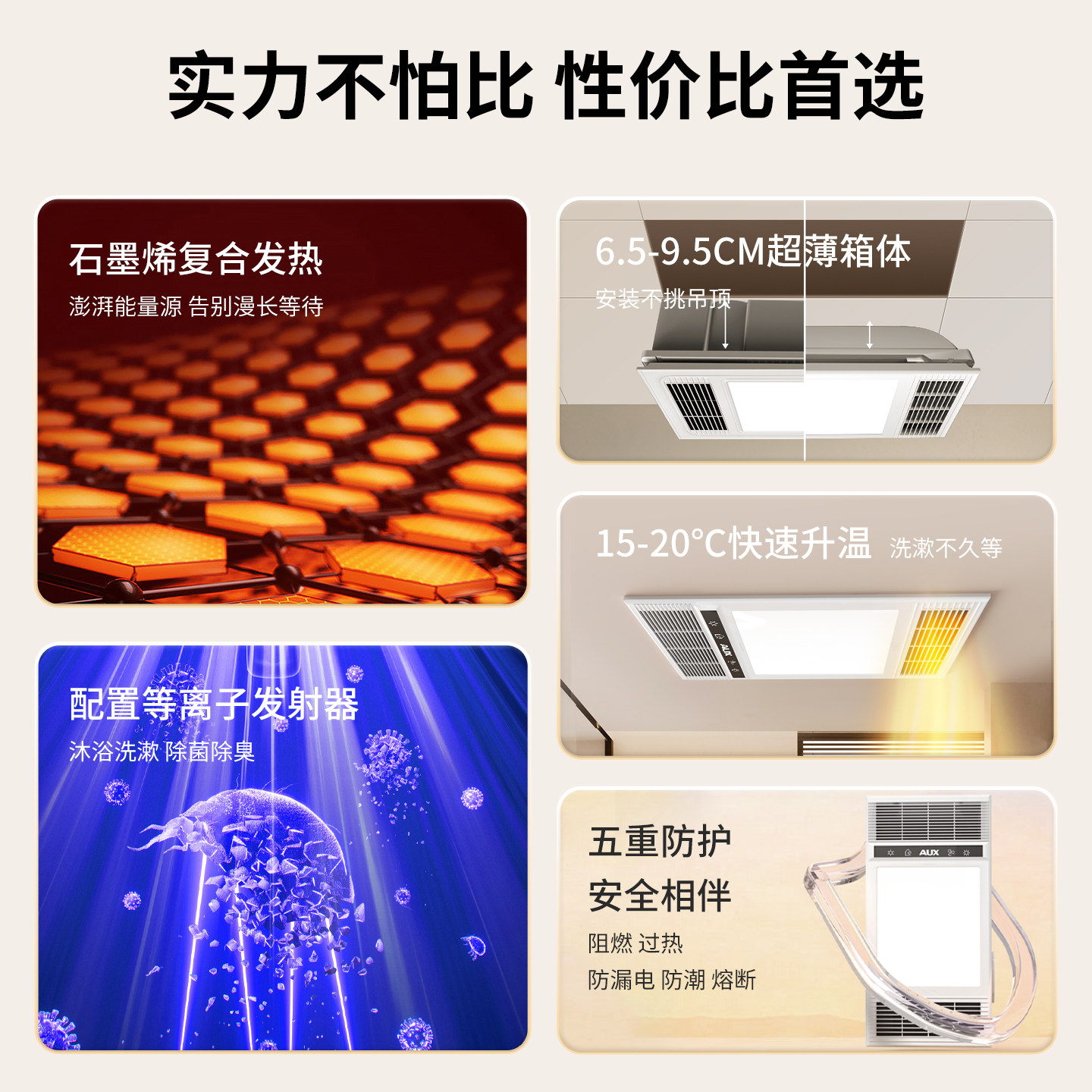 奥克斯浴霸卫生间灯集成吊顶风暖厕所照明排气扇换气五合一体浴室