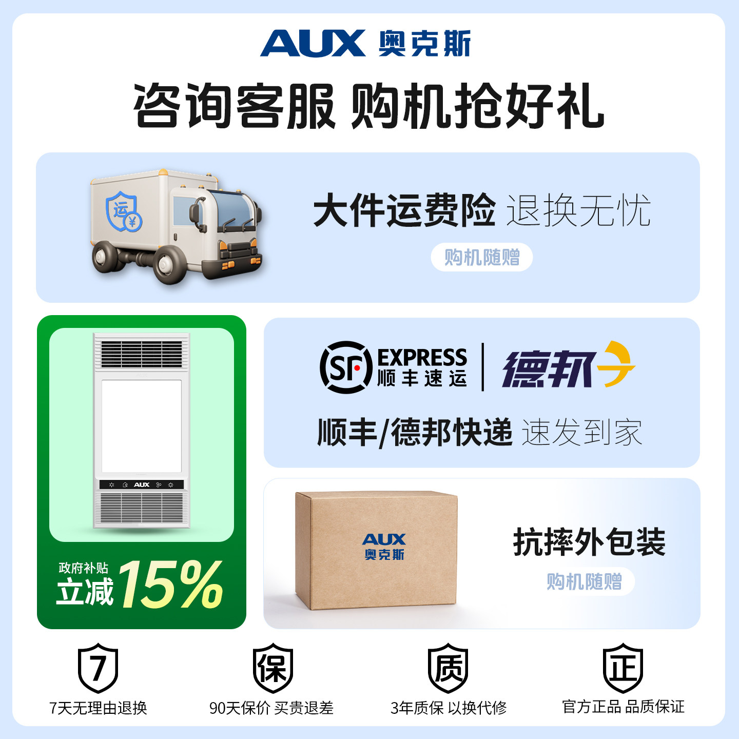奥克斯浴霸风暖排气扇照明一体