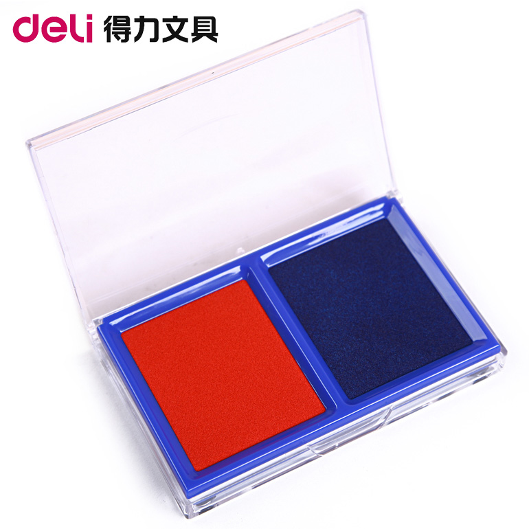 deli得力9864印台红色 方形快干印泥 财务大号印章台红蓝黑双色墨
