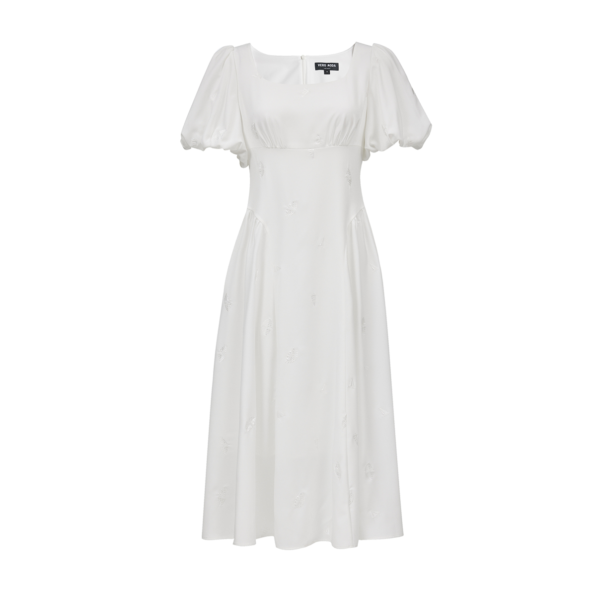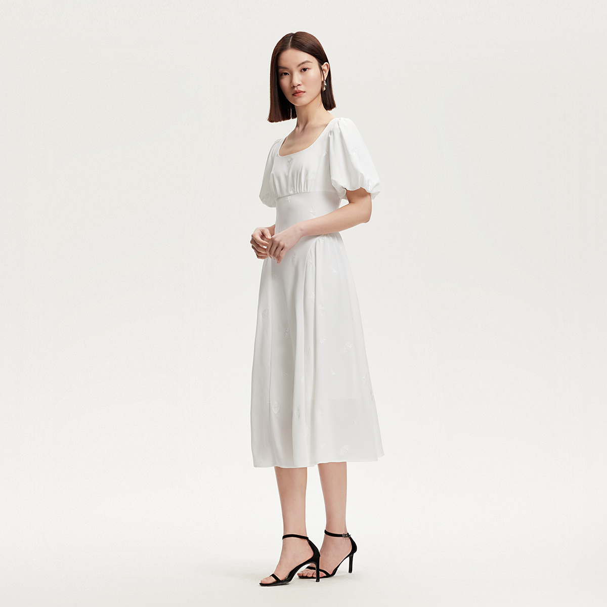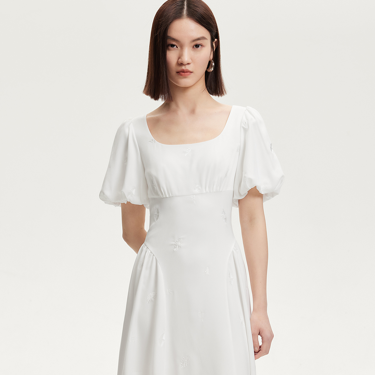 m区绫致Vero Moda连衣裙2025夏季新款刺绣设计纯色泡泡袖伞裙