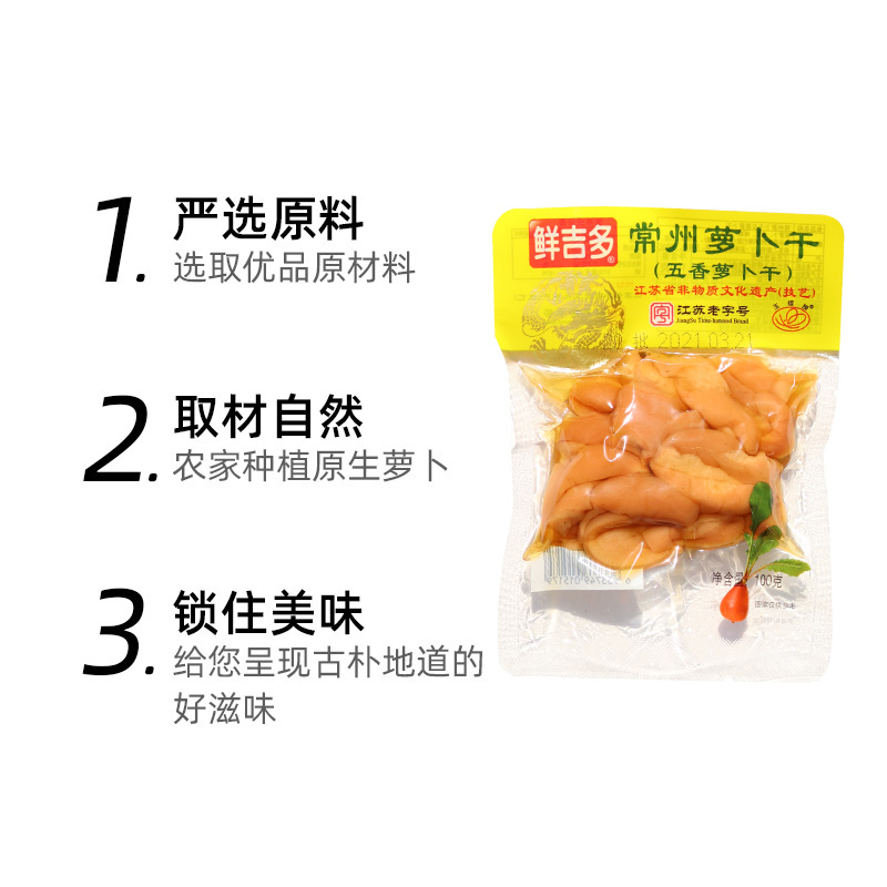 鲜吉多常州萝卜干江苏老字号五香萝卜干咸菜甜辣脆农家下饭菜包邮