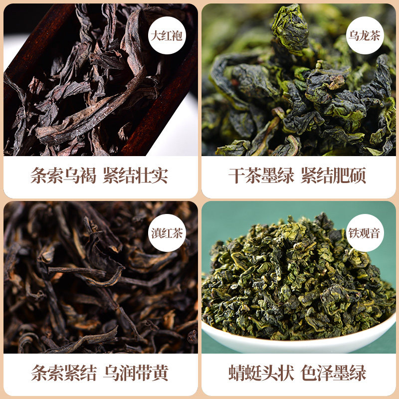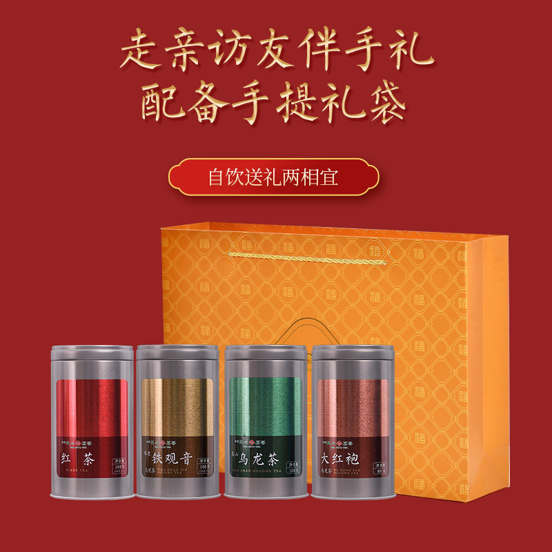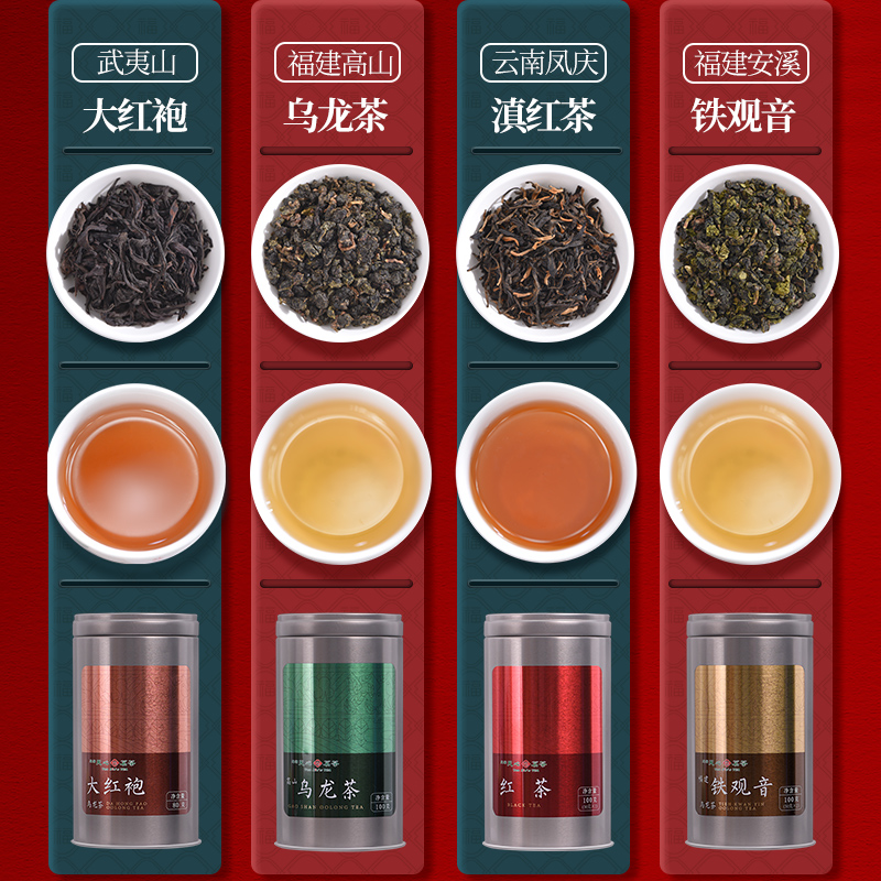 天福茗茶武夷大红袍滇红红茶铁观音福建乌龙茶4罐