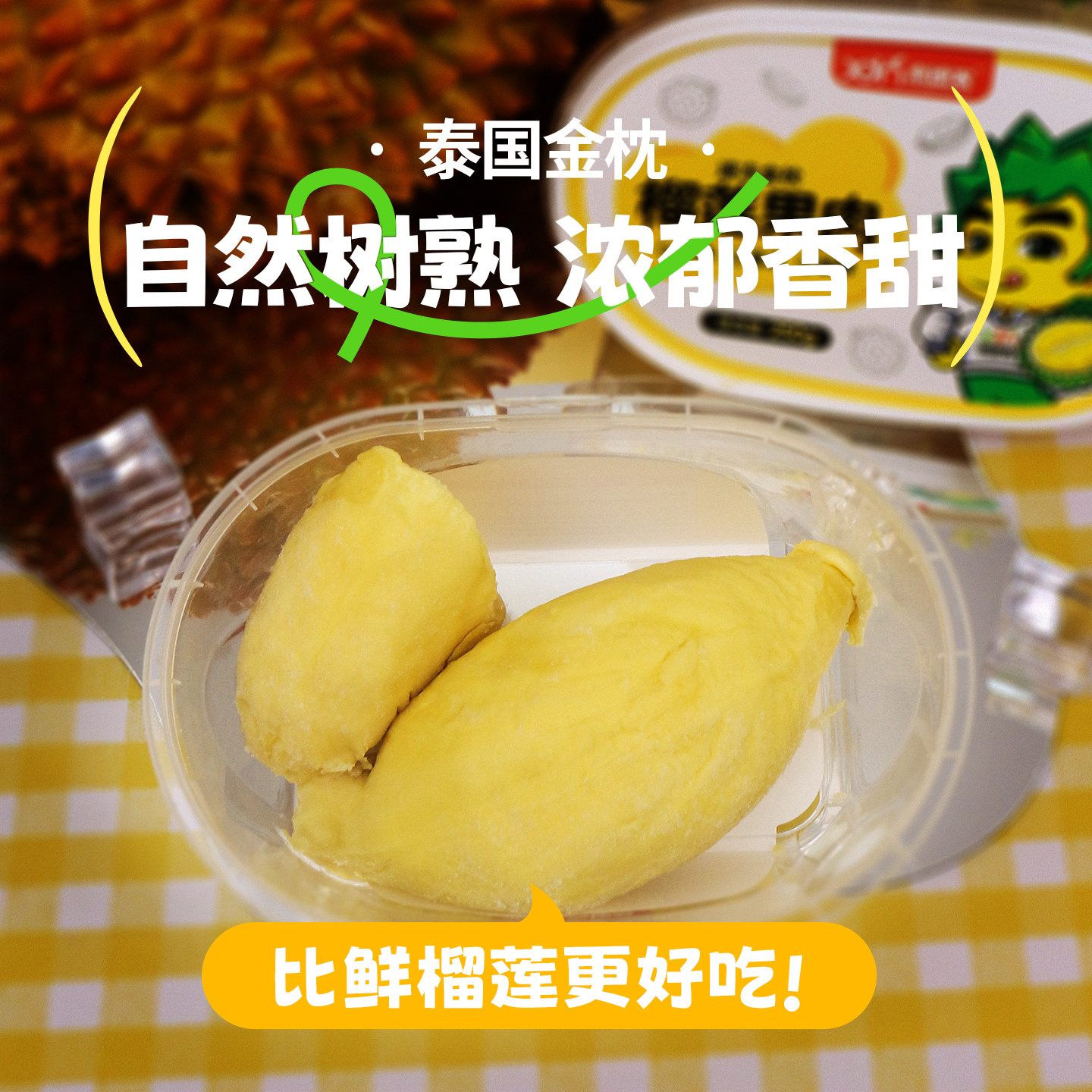 泰国金枕头榴莲250g*3盒有核冷冻泰国金枕冻榴莲新鲜水果顺丰包邮