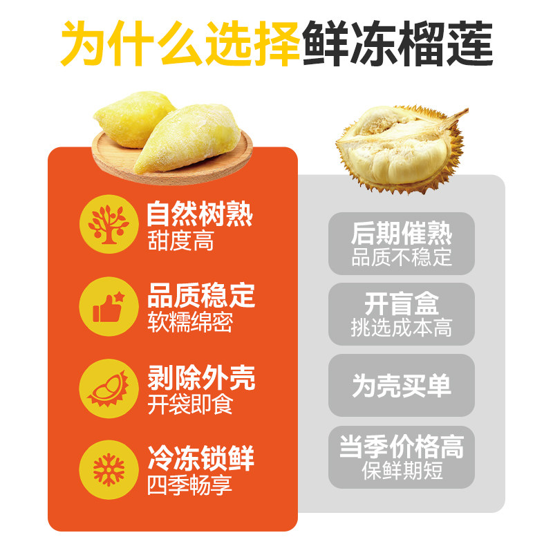 【生必赔】有核金枕榴莲肉250g*3
