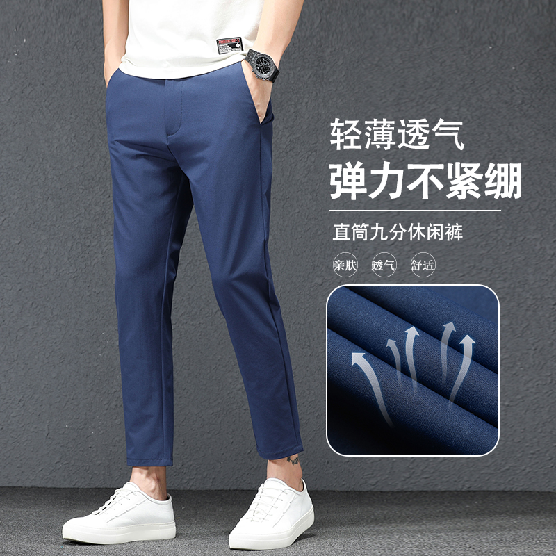 以纯YISHION九分小西裤男商务男款裤子夏季直筒小脚裤男士休闲裤
