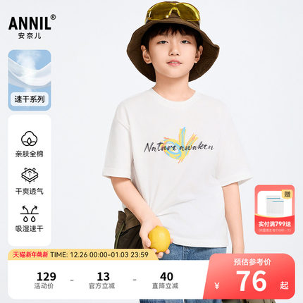 【商场同款】安奈儿童装男女童短袖T恤2025夏新款纯棉休闲亲子装