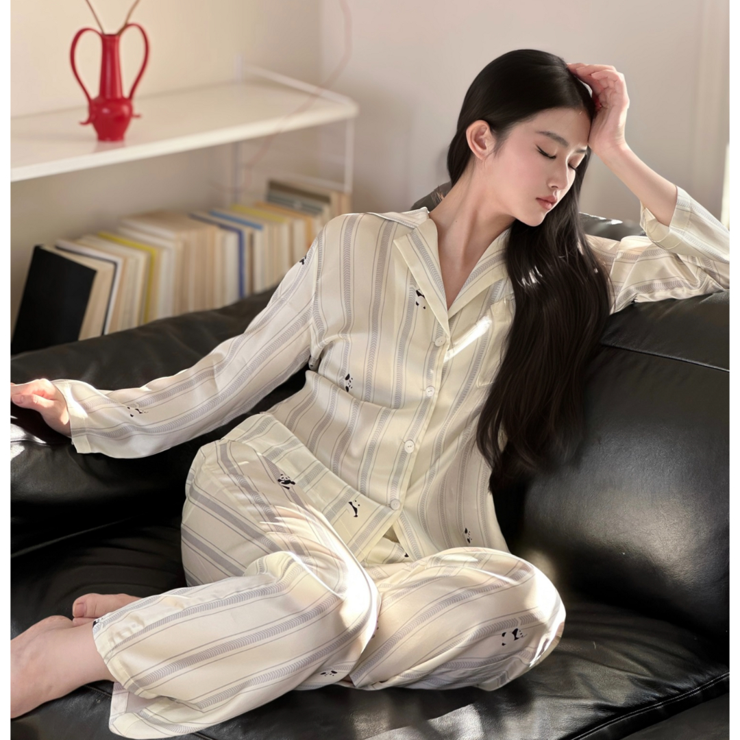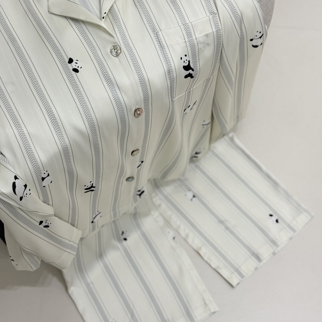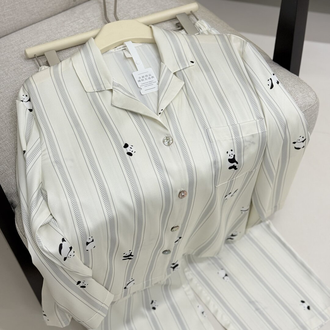 小众轻奢 夏季丝绸睡衣套装女卡通熊猫印花高级感家居服长袖长裤